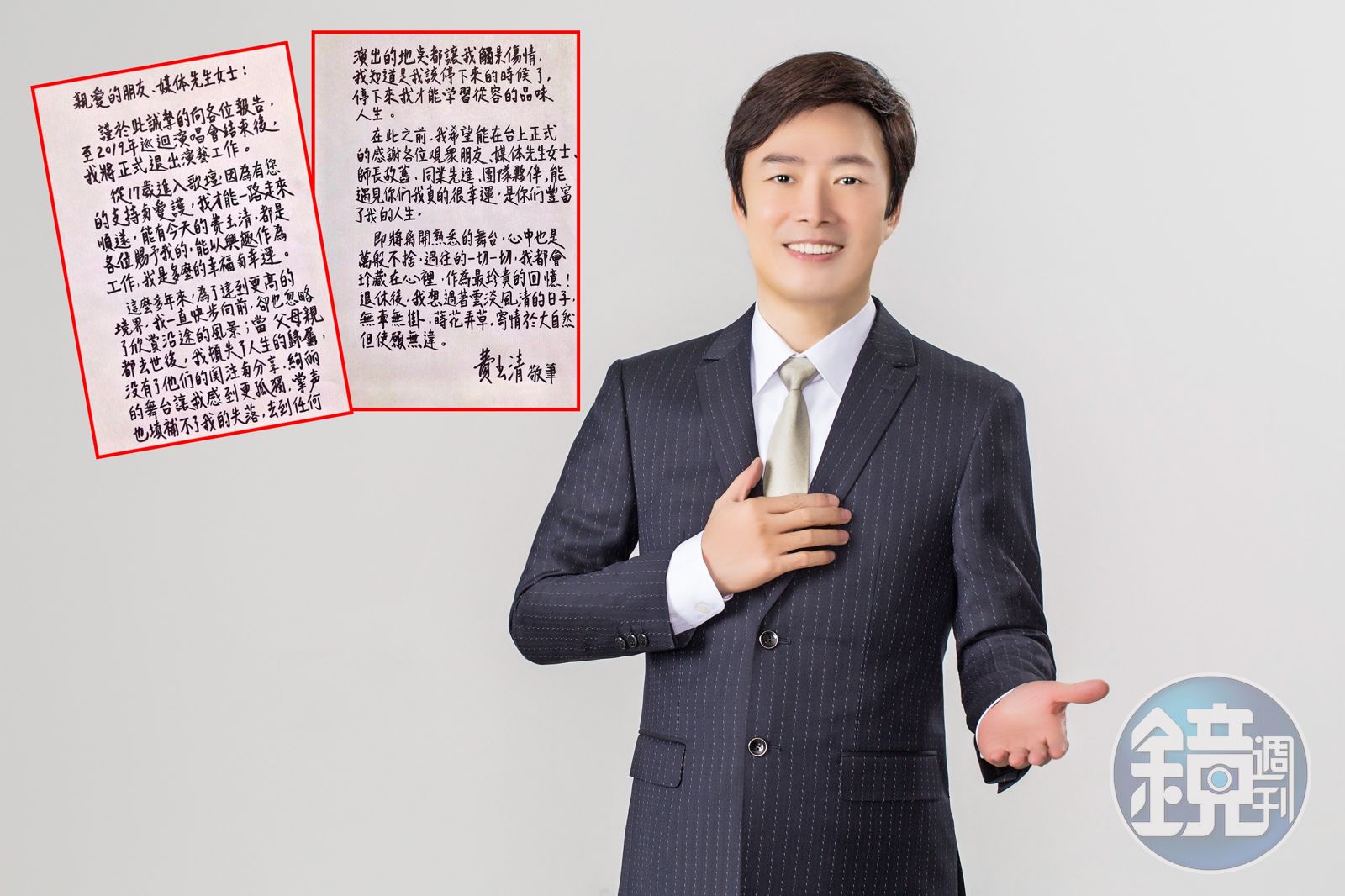 小哥費玉清並以手寫書信向歌迷跟媒體告知消息,文中寫下自17歲進入歌壇至今「能以興趣作為工作,我是多麼的幸福與幸運」「這麼多年來,為了達到更高的境界,我一直快步向前,卻也忽略了欣賞沿途的風景」。