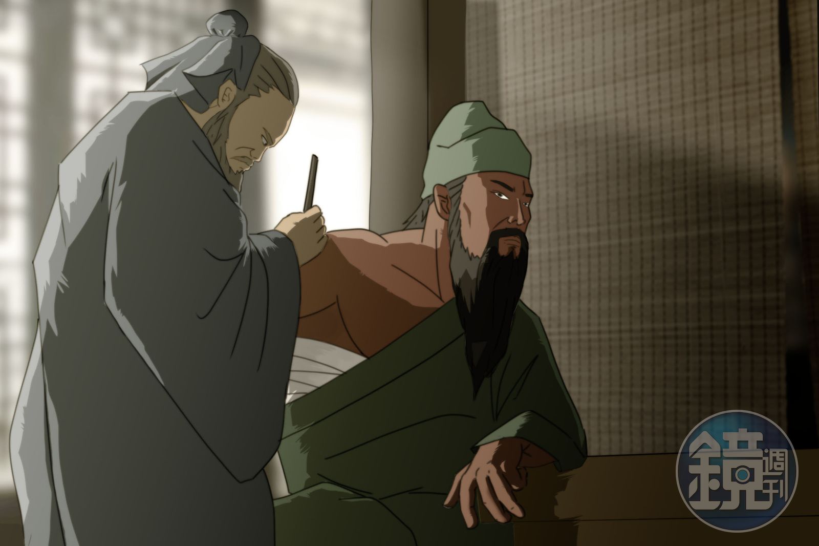 華佗最深入人心的兩個本領,一是以麻沸散進行開腹手術,一是《三國演義》的刮骨療毒故事。可是《三國》的說書人為了突顯關公的武勇,鋪張揚厲,不免顧此失彼。原來關公在戰場上右臂受了箭傷,箭頭有藥,毒已入骨,右臂青腫,不能運動。他以國事為重,不肯退兵,麾下眾將只好四方訪問名醫。正在這時華佗飄然而至,說是「特來醫治」,而「治法」是: