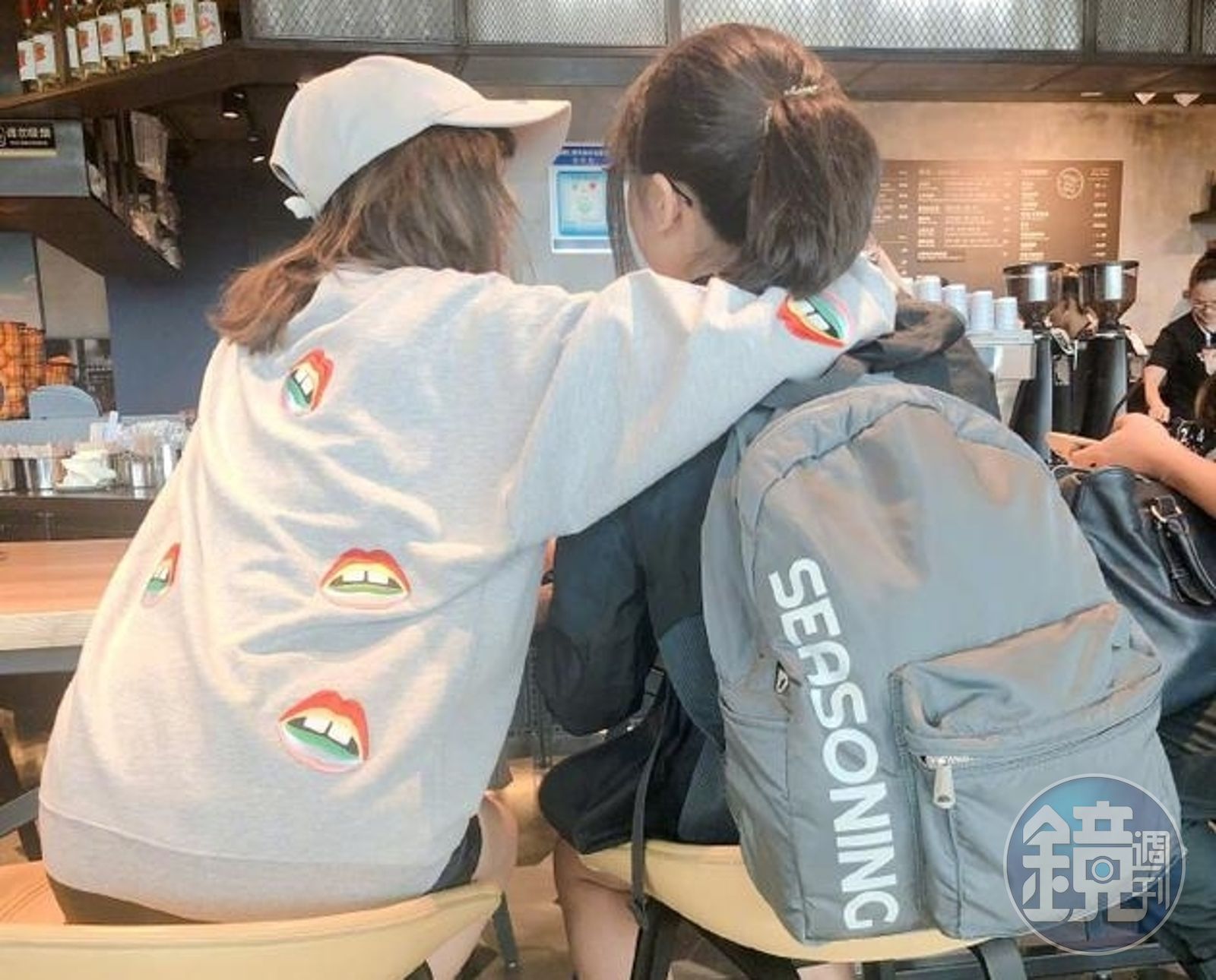 賈靜雯在微博曬出和梧桐妹的背影照,並PO文:「把妳綁回去了臭小姐,妳就是兩個妹妹最好的大禮物啦!」照片中,兩人坐在咖啡館的吧台前,賈靜雯單手摟著梧桐妹,不說還以為是一對好閨密。