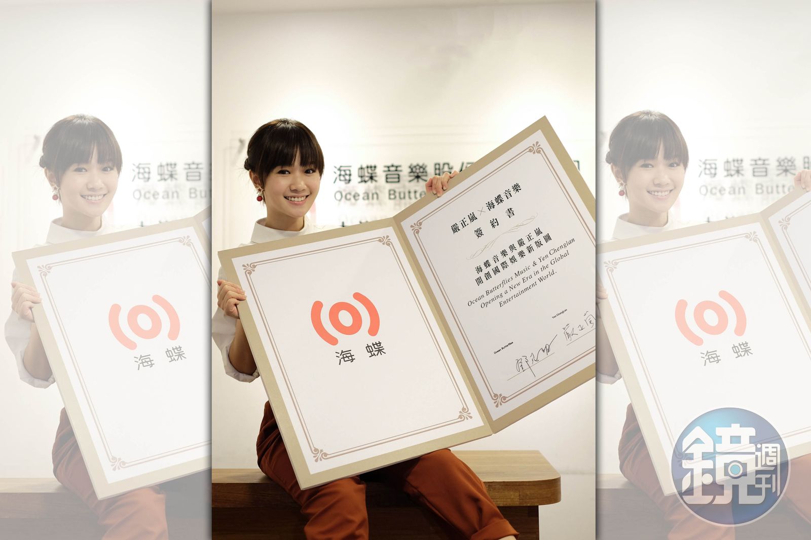 而今天(30日)嚴正嵐正式宣佈加盟海蝶音樂,即將推出個人首張專輯,嚴正嵐本身熱愛創作,從少女時期就憧憬擁有自己的創作大碟,當初入圍消息一傳來自己欣喜若狂,但在傳感謝訊息時,卻悲從中來,邊傳邊哭,因為一想到年初過世的父親無法分享到女兒的成果,覺得非常的難過,但自己早已寫好一首歌,是關於父親的,希望在首張專輯中發表,「讓把拔跟我一直在一起!」十分孝順。