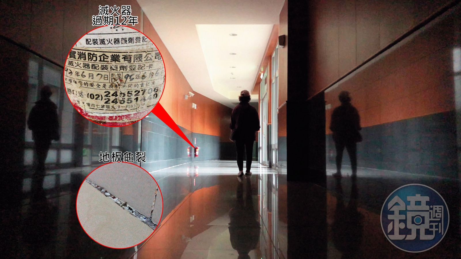 除了建築本身狀況連連,公安系統也是一大問題,住戶說,一些在公共空間的煙霧感應器失靈,長期無人檢修,應該定期更換的滅火器,竟早已過期十多年,營造商和包商協調不力,根本是把住戶的生命財產安全置於險境。