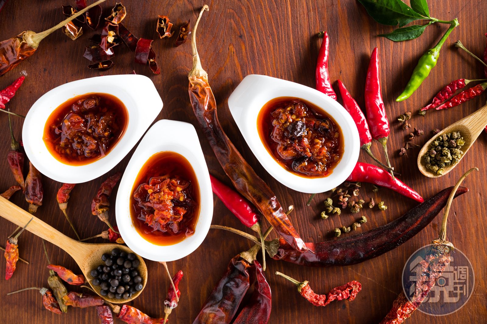 朱淑慧自己平時愛吃辣,也很愛研究辣椒,家中種植各式品種辣椒,她說不同品種的辣椒都有其特色,像是第八村以5種花椒與5種辣椒做出來的底醬,就包含了雞心椒的色、朝天椒的辣、193辣椒的甜,還有其餘辣椒的香氣。有了這底醬,再分別做出3款辣椒醬:像是帶有馬告香氣的五辛素「朱醬」、加入香菇、薑黃的全素「曹醬」,以及添加薑黃、蝦米的「黃醬」;還有加入小魚干的「小魚干黑豆豉醬」。