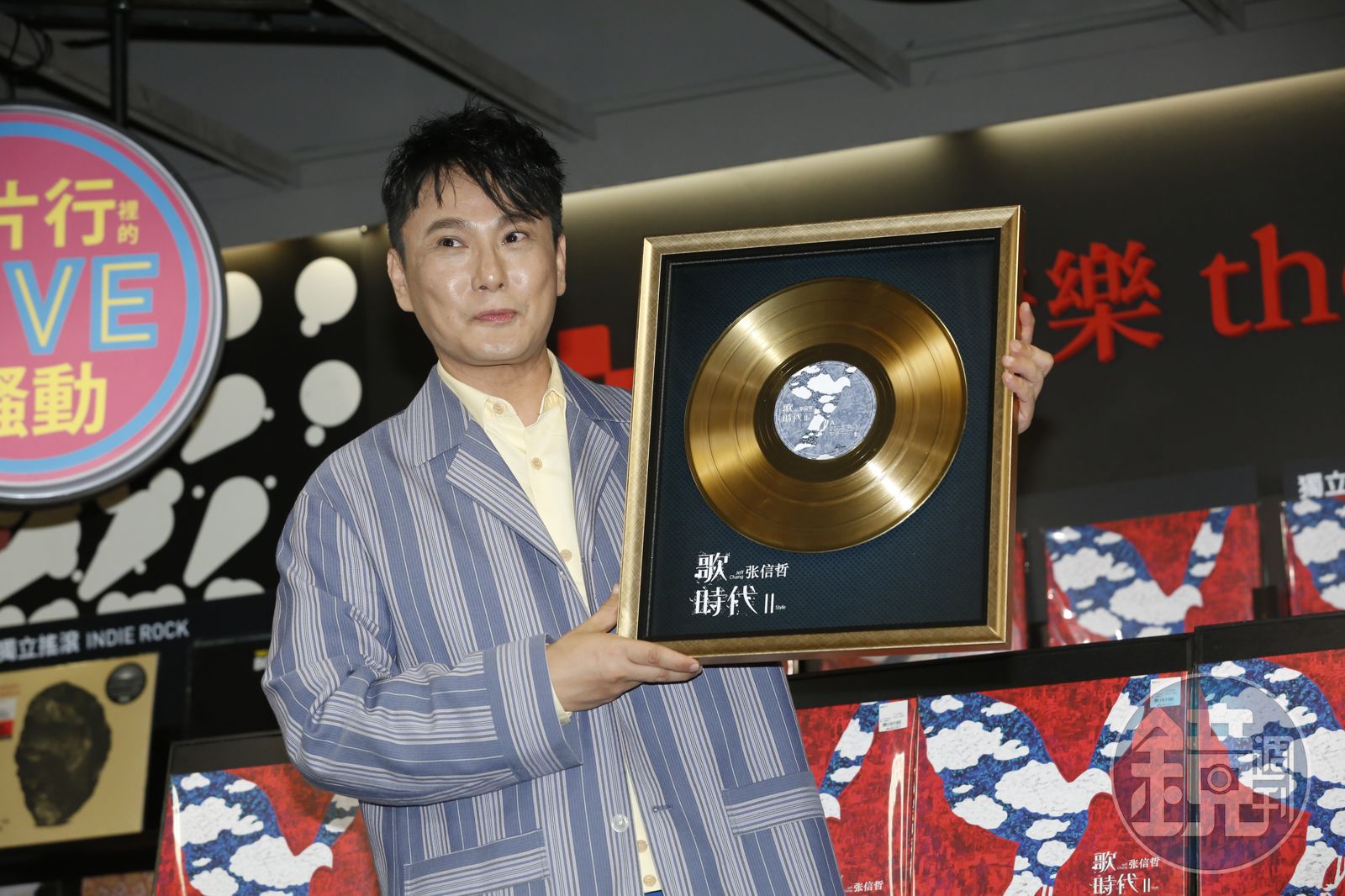 資深唱將張信哲2日為新專輯《歌時代II》舉辦黑膠發布會,唱的雖是當代經典,卻創新罕見地以黑膠的方式發行,並且在北京音樂廳與莫斯科交響樂團及美國樂手一起錄音完成。