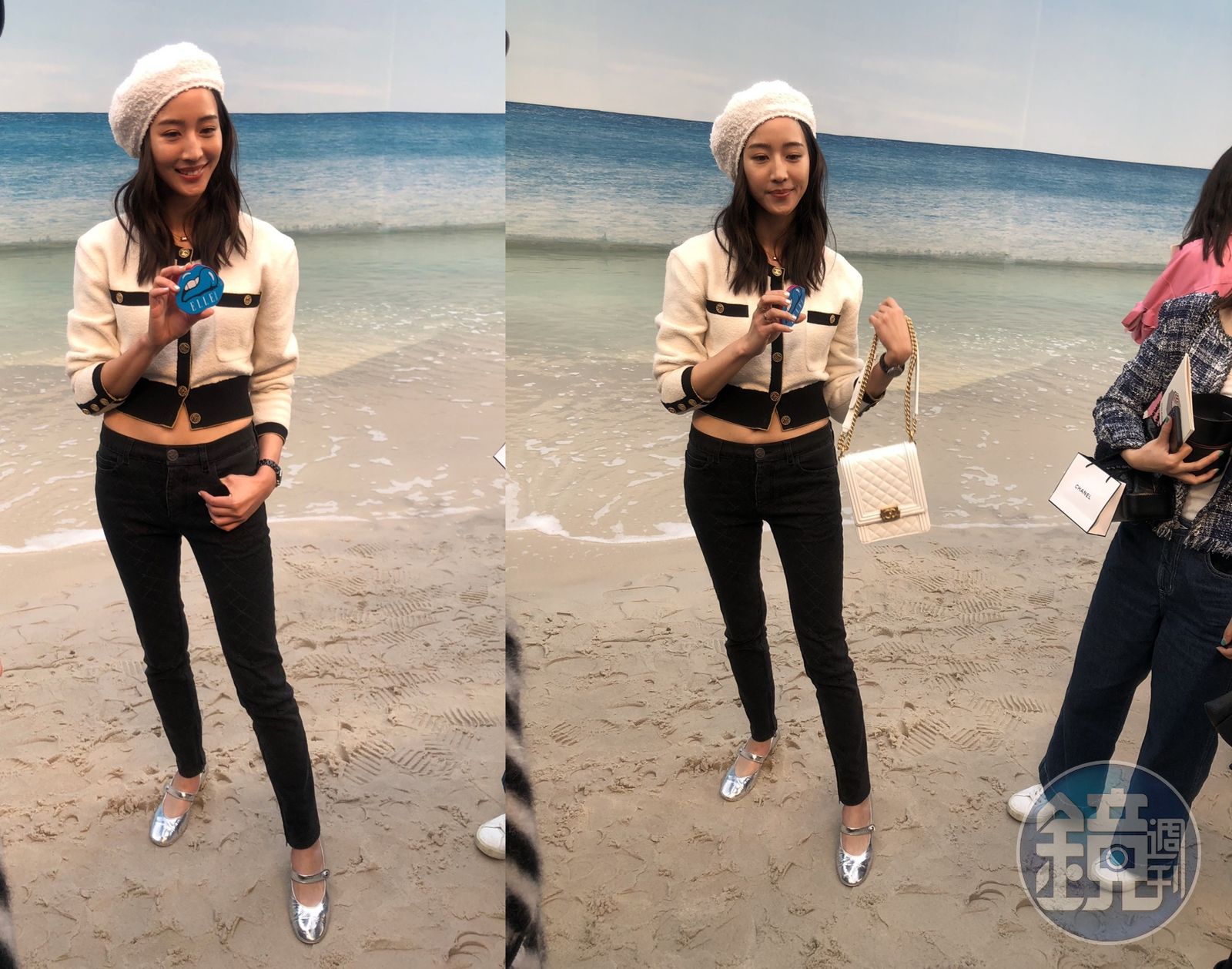 張鈞甯將白色呢帽斜戴著,黑白雙色的短版開襟衫露出她平坦腹部,下半身則以合身的黑色牛仔褲與金屬銀色瑪麗珍鞋搭配現身看秀,她的清靈氣質立刻被來自台灣的VIP迅速搜尋到,因此上前希望能夠合影,面對品牌公關人員笑容可掬的她,卻一口以簡單幾字乾淨回絕:「我先工作。」 不願意與粉絲拍照的悍然拒絕,令CHANEL貴賓心碎。