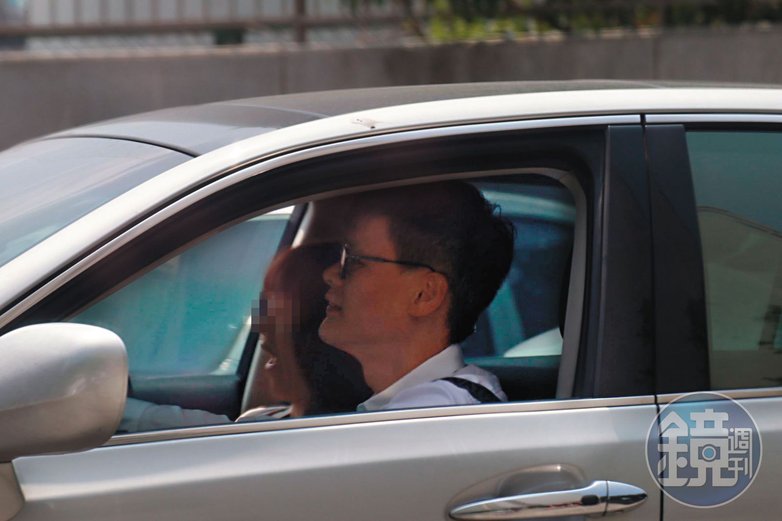 陪在曹合一身邊一起等待的邱國揚,是嘉義地區鼎鼎有名的刑案高手,他身穿白襯衫、淺色休閒褲,嘴巴叼著菸,一直低頭猛滑手機,不時還笑著拿給曹合一看。2人在等待過程中,似乎還刻意站在柱子旁邊,一有車子經過,便立刻警覺地往內縮,而曹合一始終背對馬路,顯然是不想讓人認出來。