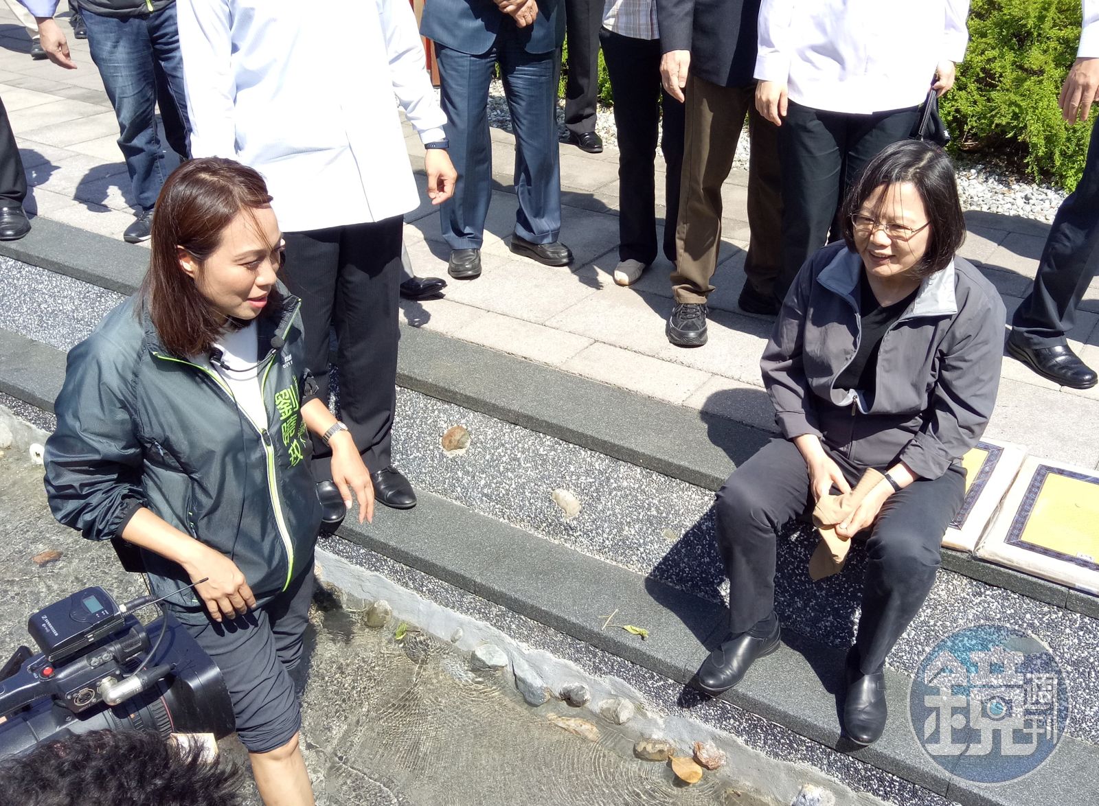 中常會前,蔡英文參觀台肥海洋深層水園區,劉曉玫還脫鞋親自體驗海水足浴步道,直呼水溫很舒服。蔡英文只在步道旁伸手試水溫,並沒有脫鞋下水。