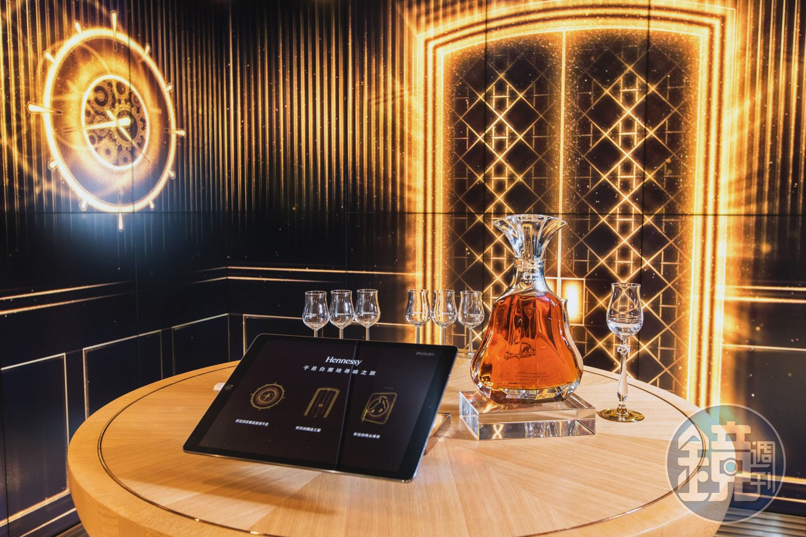 我們一群人穿過華麗的拱形門廊進到小房間裡,便似一腳踏進虛擬世界,來到了Château de Bagnolet,一場虛擬的小旅行就此啟動。軒尼詩以所謂的沉浸式體驗,讓客人透過互動科技,原汁原味體驗旅行到干邑區的微醺感受,從軒尼詩的歷史、釀造到成品,娓娓道來關於頂級干邑的故事,即使是飲酒的門外漢,也能輕易理解;若是精於此道者,更是能從店員口中獲得珍貴情報。