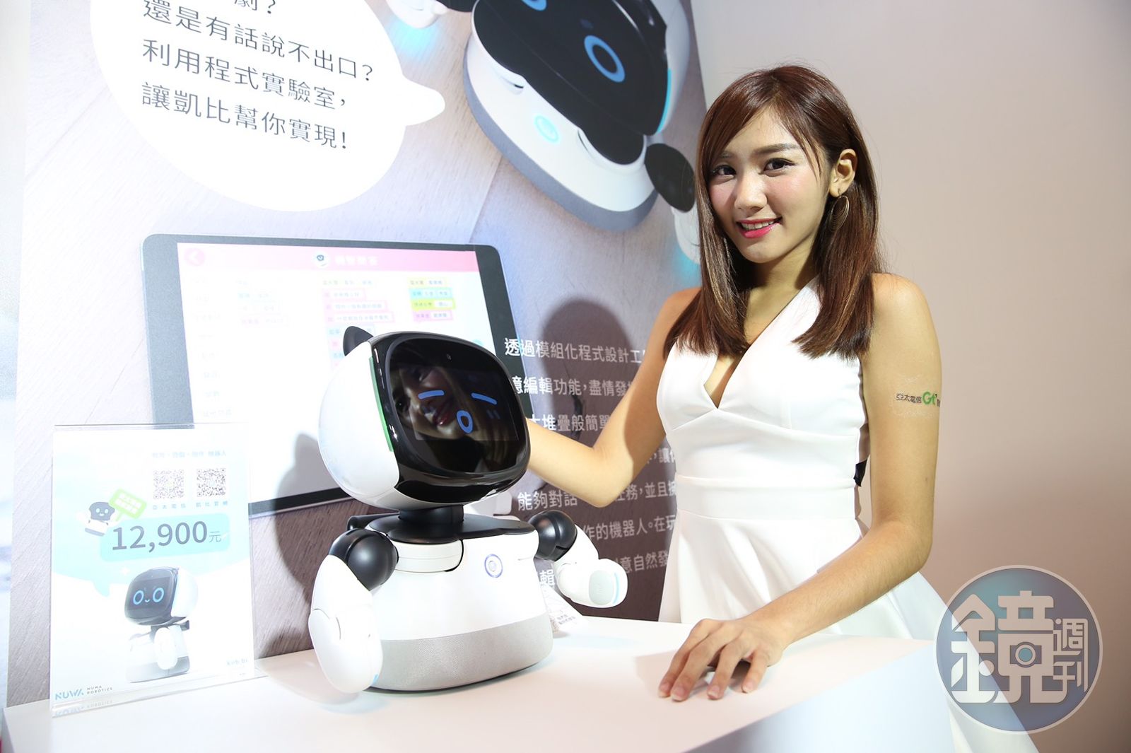 「陪伴型機器人凱比同學是鴻海生產製造,主要瞄準兒童教育市場,首波包括圖書館、幼稚園都陸續下訂單,與企業端的Pepper機器人明顯區隔,希望凱比同學能夠像電視機一樣普及,走入台灣每個家庭。」亞太電信總經理黃南仁說。