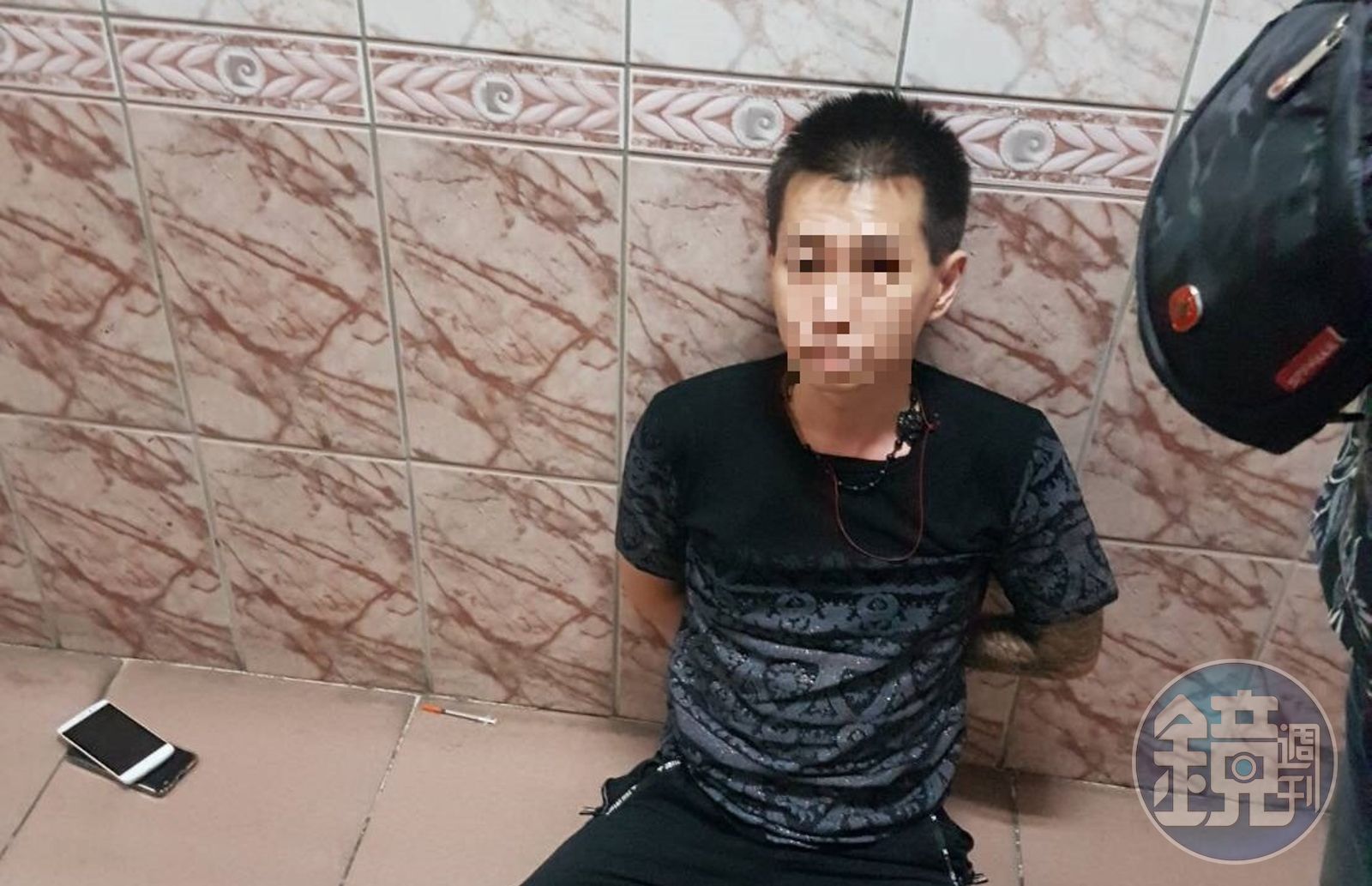 天道盟「太陽會」臺北分會綽號「porsche」的林男遭逮,竟是因毒癮發作才狼狽落網。(警方提供)發布時間:2018.10.04 15:46 臺北時間