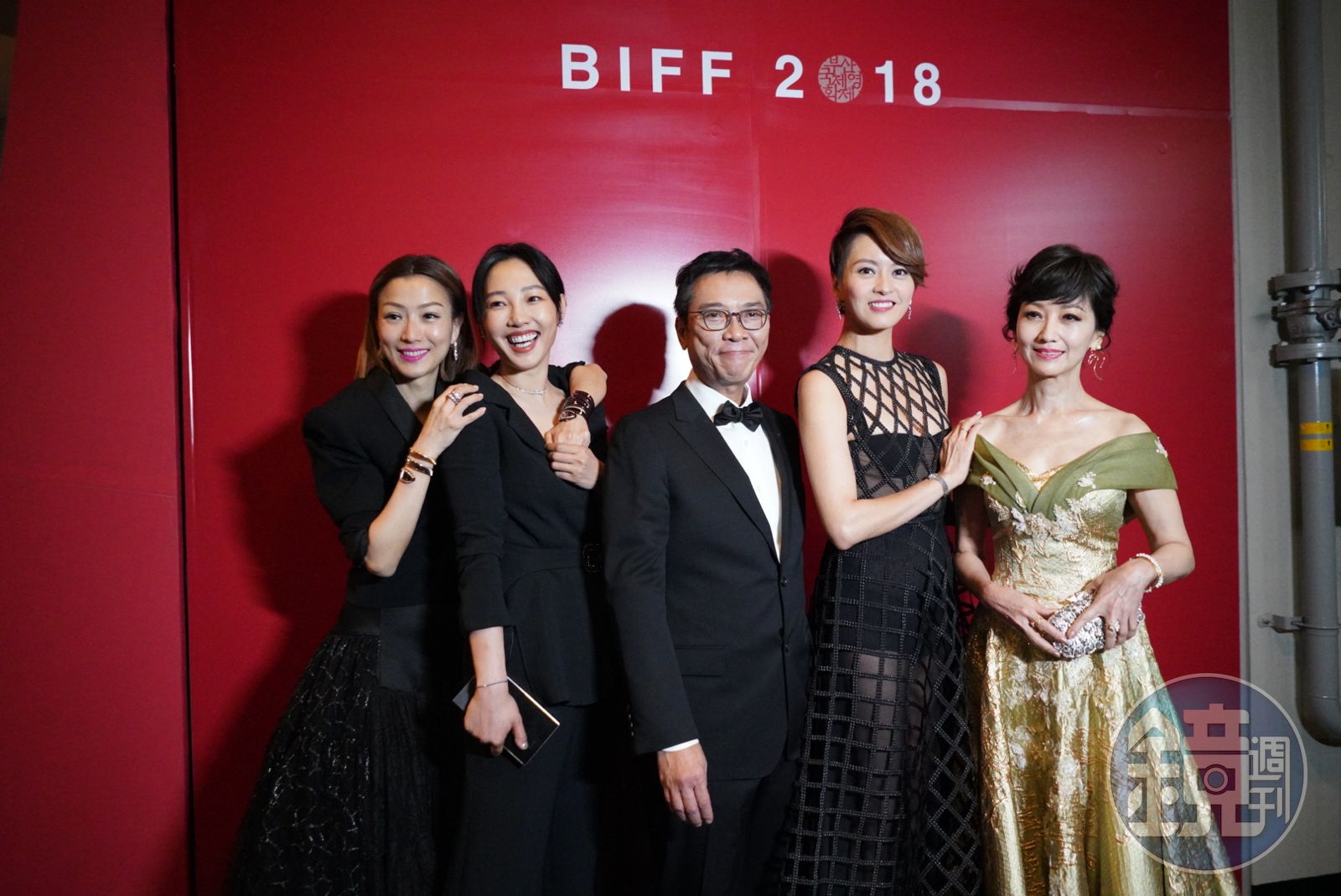 之後白百何穿著一身帥氣黑色褲裝,隨導演關錦鵬及鄭秀文、梁詠琪、趙雅芝等該片主要演員亮相釜山紅毯,氣場十足,對於再次與香港劇組合作,她表示十分榮幸,鄭秀文的黑色西裝拼接網紗長裙則展現百變天后的時尚觸覺。趙雅芝穿著一襲金色鑲綠邊長裙,完全看不出將滿64歲,依然充滿仙氣,果然不愧是「白娘子」。