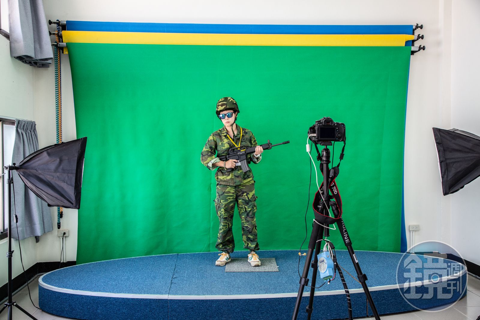 本以為就只是單純的射擊體驗,沒想到還能換上迷彩軍裝,拍下威風凜凜的紀念照,隨後教官一對一指導使用步槍的技巧,幾乎是以「國造5.56公釐九一戰鬥步槍」打造的模擬步槍,不論是外型和重量,都跟真槍沒兩樣。
