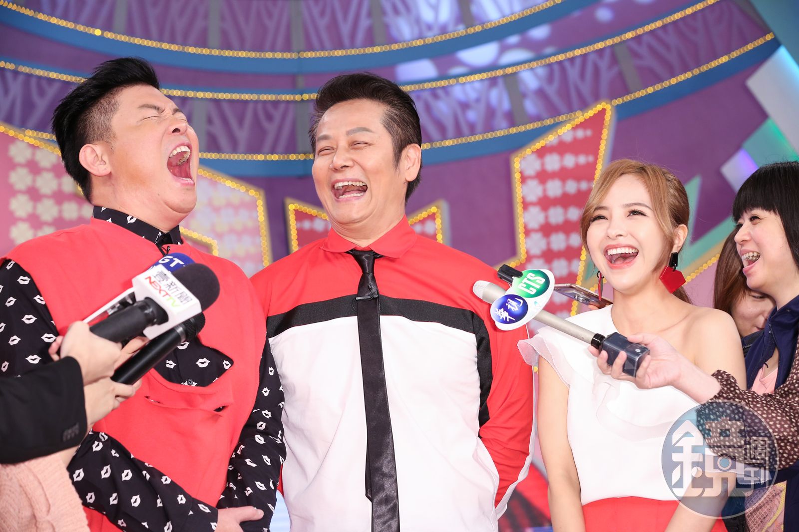 徐乃麟(中)頻爆料節目沒加薪,曾國城忍不住大笑出來。發布時間:2018.10.09 15:28 臺北時間
