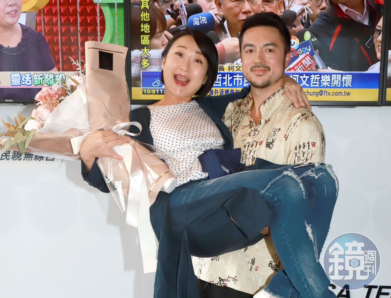 班傑公主抱廖怡裬,讓她直嚷著害羞。(民視提供)發布時間:2018.10.09 15:48 臺北時間