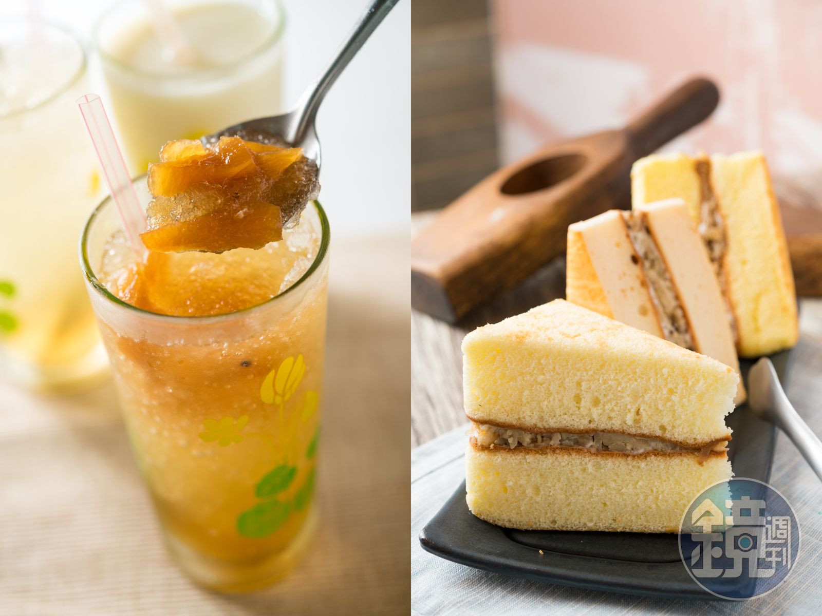 中正路上的「義華餅行」則是適合帶著走當點心的代表,招牌的「鹹蛋糕」有別於鹿港式把肉燥夾在海綿麵糊裡蒸熟的做法,蛋糕體是用烤的戚風蛋糕,塗上美乃滋後夾上筍丁餡,冰著吃,綿軟蛋香中有鹽氣點睛,輕盈不膩。