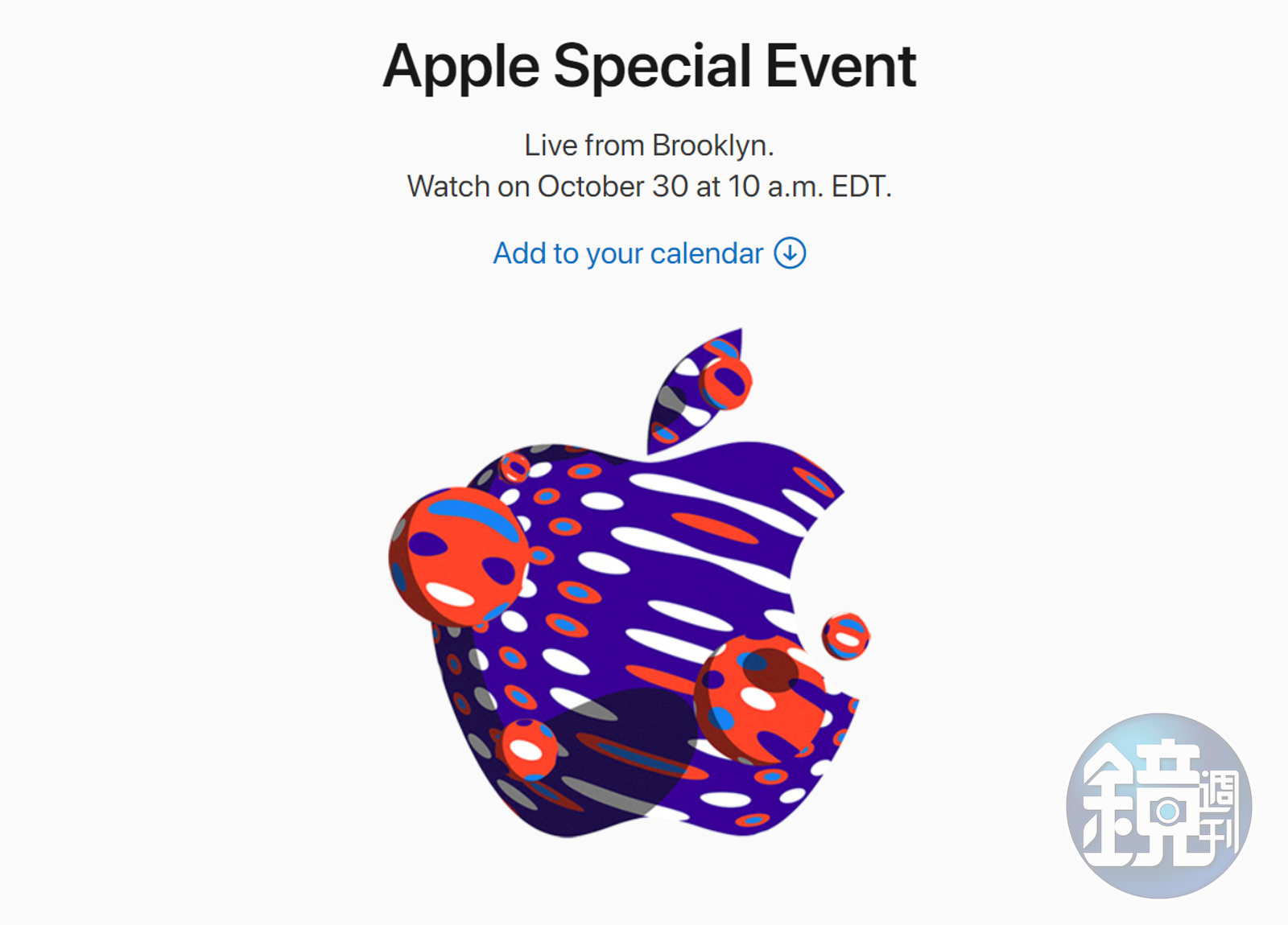 蘋果今(19)日又在官網公布第二場秋季發表會,將於台灣時間10月30日晚上10點舉行。(翻攝自蘋果官方)發布時間:2018.10.19 11:26 臺北時間