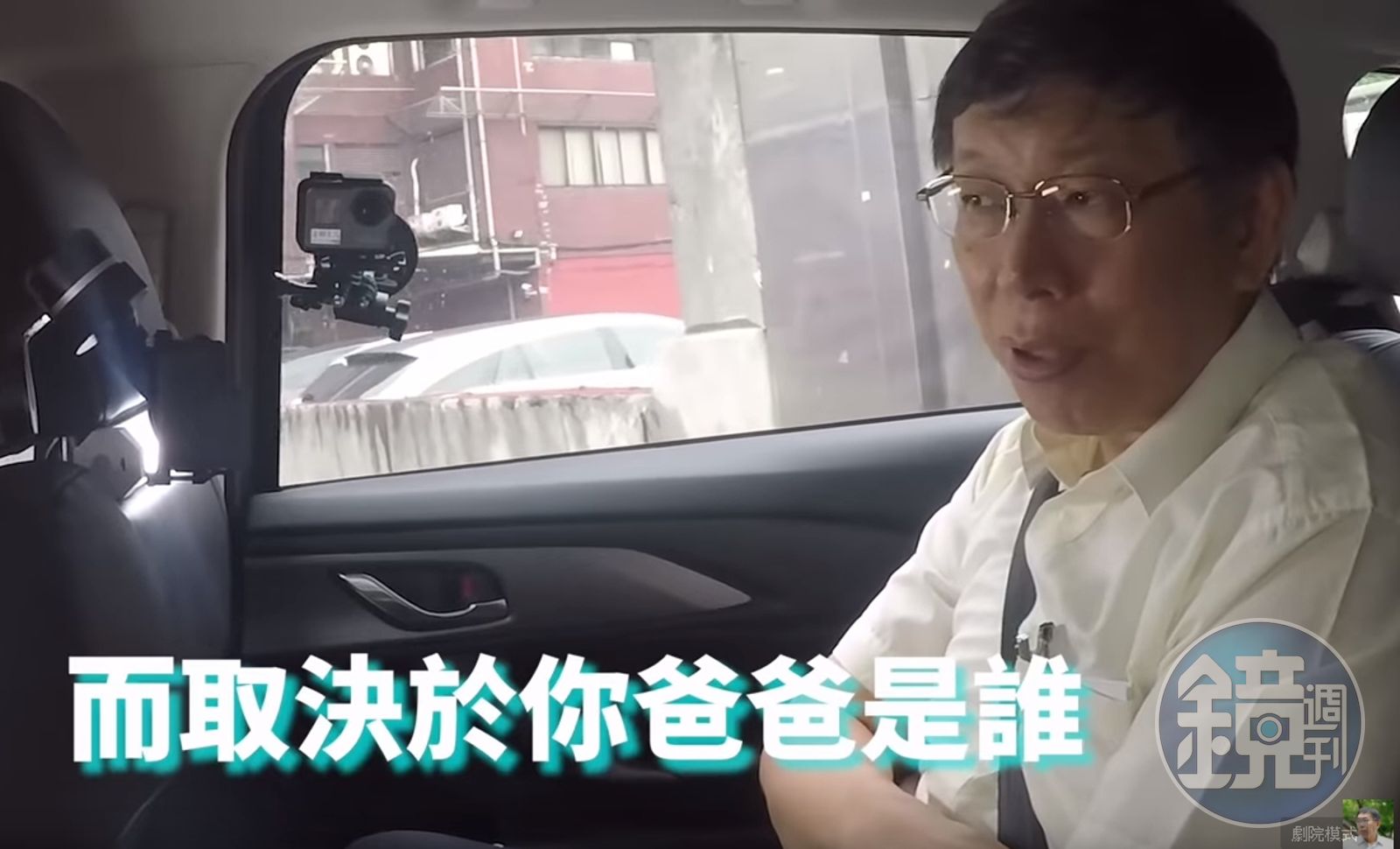 其中王俊凱問到對年輕人來說,買房根本是不敢奢望的一件事,尤其是上班族會有害怕和不確定的感覺。柯文哲則回應,年輕人是從失望到絕望的一代,我們應該要讓年輕人感受到有努力就會有成功。但他認為,現在台灣的政治現況是「成功不是取決於有沒有努力,而是取決於你爸爸是誰。」