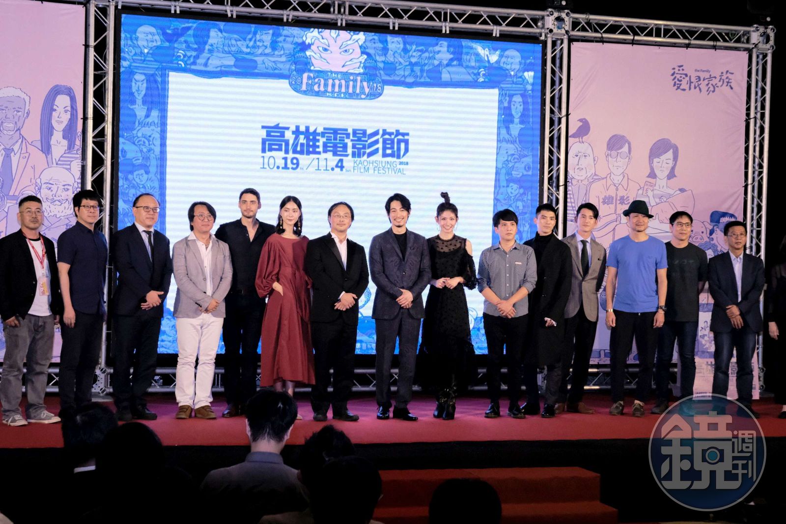 然而在大合照中,無緣的影帝吳慷仁與前女友鍾瑶,儘管中間隔著5人,兩人卻意外的同框了,也為高雄影展帶來另外的話題。