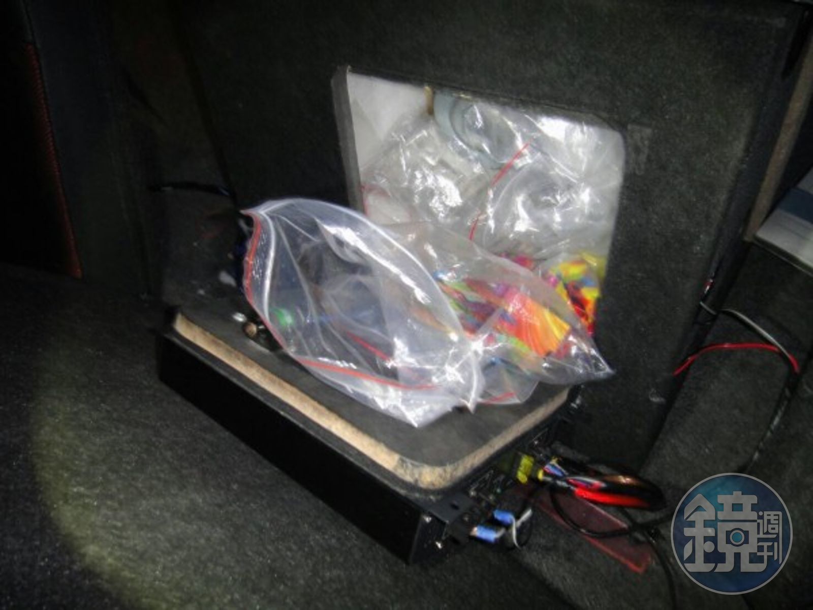 但交付毒品反而讓警方可以名正言順搜索車子,果然後車廂發現放置一只音箱,但外蓋卻未鎖緊,露出一截物品,經移開外蓋,赫見裡面藏放大批毒品,清點後總計查扣小惡魔汽泡飲27包(重274.5公克)、海豚咖啡包43包(重218公克)、斯斯冲飲包11包(重92公克) ,均驗出含甲基卡西酮成分;除了新興毒品,警方還搜出K他命20包、K他命1罐、搖頭丸10顆、電子磅秤及疑似販毒所得4萬2千元,隨即將王嫌帶回偵辦。