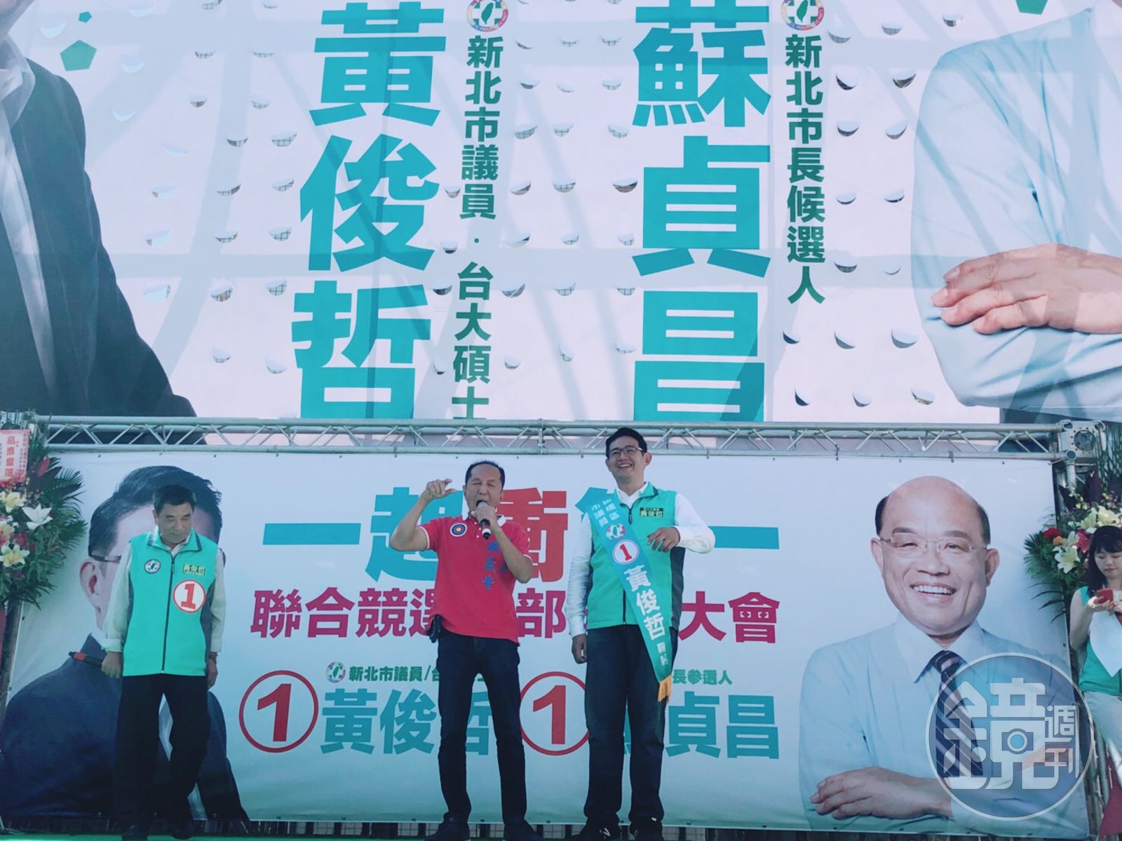 21日上午,新北市長參選人蘇貞昌、新北市議員黃俊哲舉辦聯合競選總部成立大會,現場還出現網路討論度超高的台南市長參選人「虧雞福來爹」林義豐同台。林義豐致詞時表示,他和黃俊哲的父親是舊識,黃俊哲也是青年才俊,希望選民支持優質議員進議會;而對蘇貞昌的印象,則是因他擔任台北縣長時做得很好,也要祝福蘇當選。