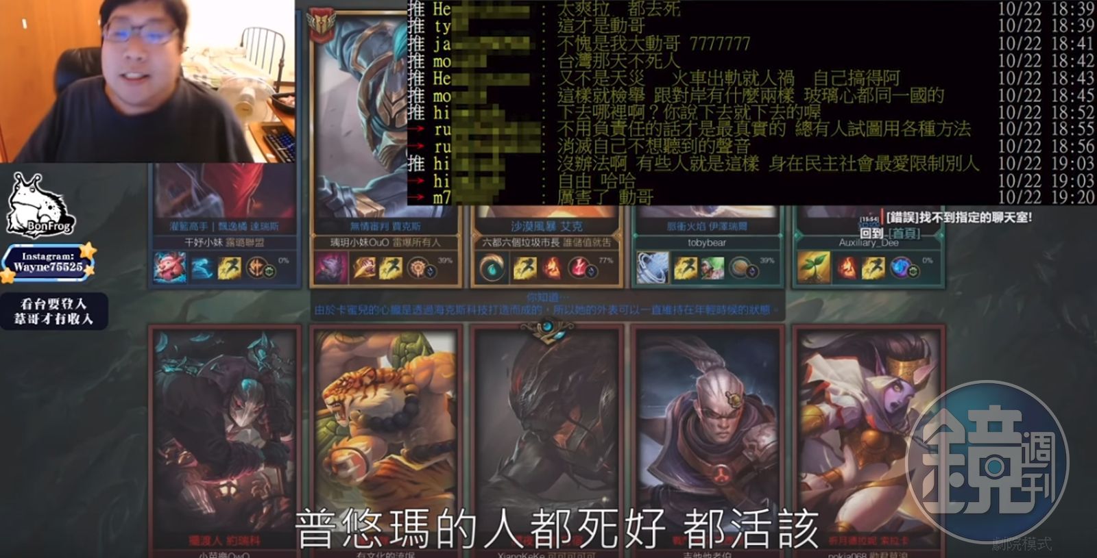 統神胞兄「國動」日前開台,疑似玩「LOL」英雄聯盟時被隊友雷到心情不滿,隨後又看見粉絲提問「普悠瑪出軌需要輸血,你可以捐血嗎?」,竟讓他失控狂嗆「那些人都死好啦!普悠瑪的人都死好、都活該!愛搭普悠瑪,死好。怪你們窮、沒錢買車,爽了沒?X你娘咧,不要問我台灣賤畜的問題!都是些賤人,都死好啦,X你媽的。」