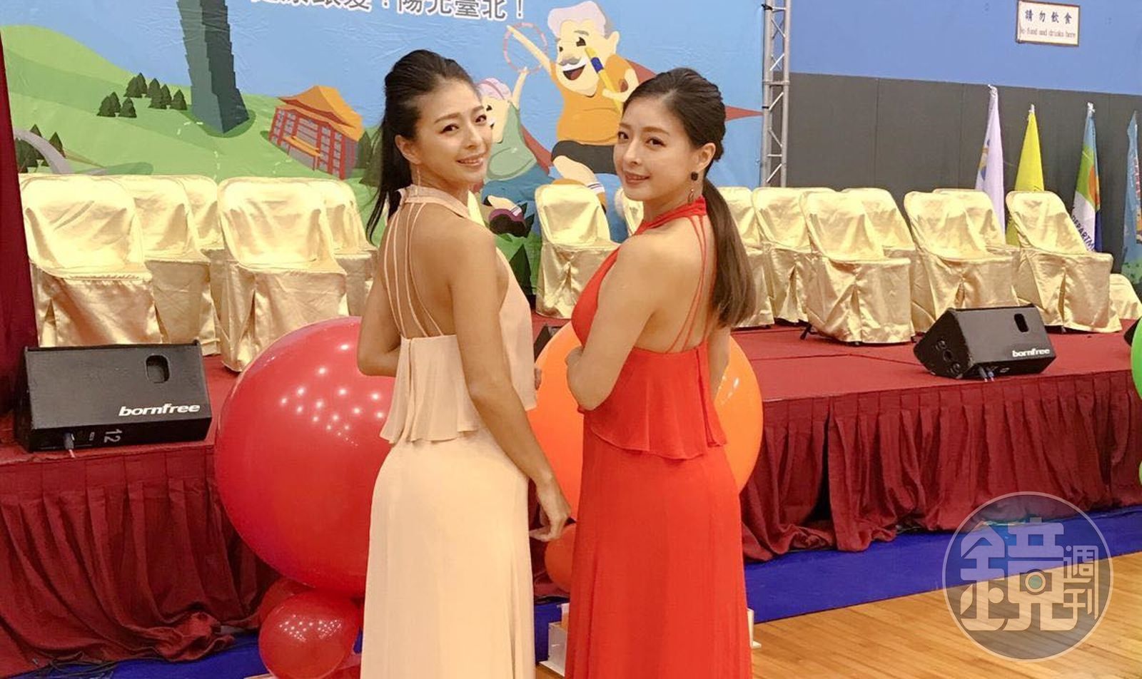 雙胞胎姊妹2*sweet萱野可芬、萱野可芳受邀主持銀髮族運動會,一襲露背禮服讓長輩們深怕兩人著涼。 (唱戲世界娛樂)發布時間:2018.10.23 15:34 臺北時間