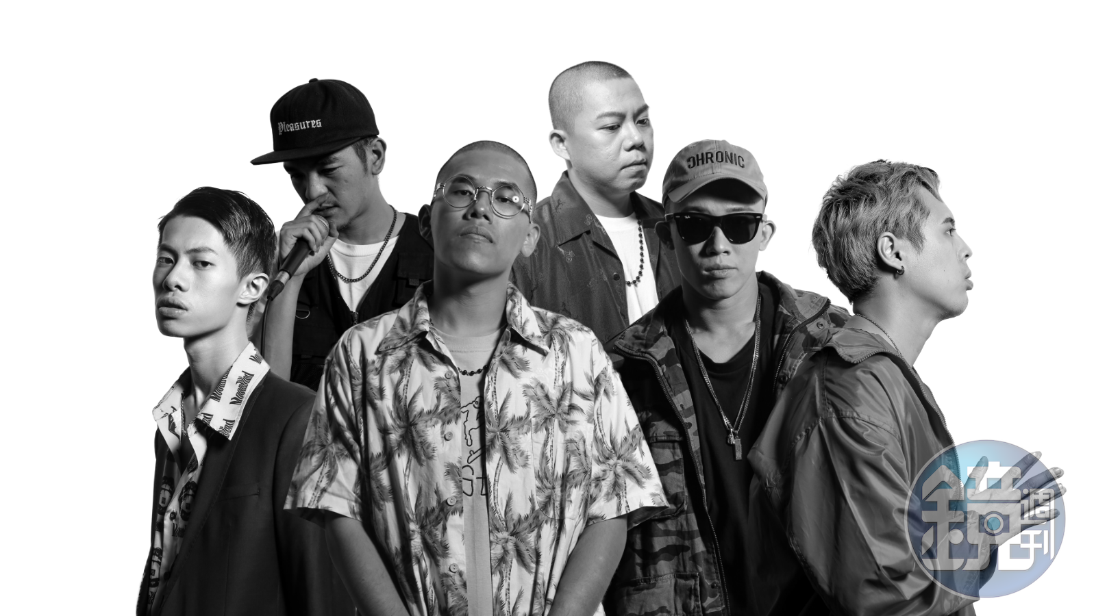 龍虎門組超強戰隊 集結樂團與饒舌歌手跨界演出 嘻哈品牌「龍虎門」集結莫宰羊(由左至右)、三小湯、Dudu King、小人、大衛.蕭及SOWUT跨界合作。(龍虎門提供) 發布時間:2018.10.25 15:56 臺北時間