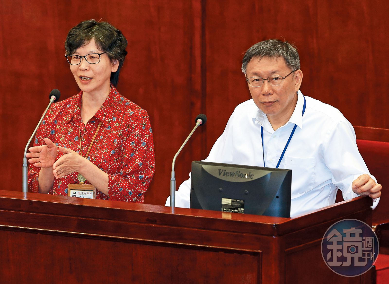 那時,蔡壁如發現柯文哲會對窗外發呆,自言自語說:「為什麼會這樣?」頭髮也在這時白了,情緒緊繃,每天跟交通局開會討論政策。自尊心強的柯文哲,在議會任議員罵,一句話都無法回應,只能默念金剛經,像一頭任人拔毛的獅子。2017年,世大運之後施政滿意度升到最高。蔡壁如說,有一晚柯文哲批完公文,又跟她檢討滿意度低迷的原因,那時柯文哲說:「我要永遠記住那個時候。」但隨即被蔡壁如吐槽,「我說,你最好記得。果然他很快就忘記了。他表現很狂的時候,就是他自信的時候。」