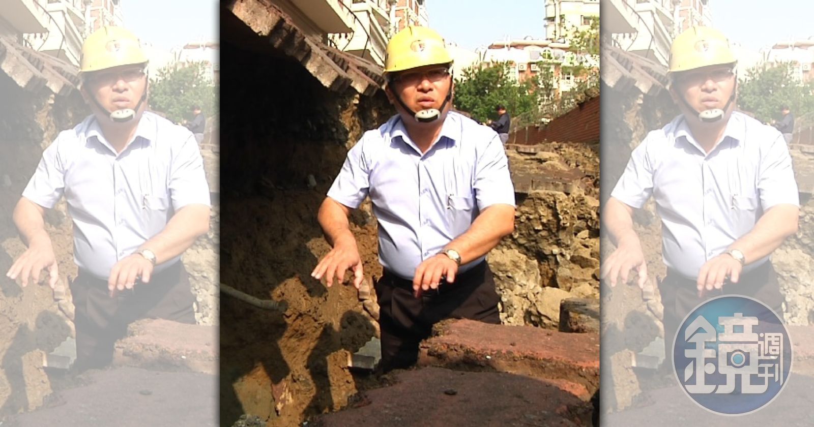 施工單位認為應該是挖破自來水管,大量水掏空地基 導致路面塌陷。(翻攝網路)發布時間:2018.11.05 13:23 臺北時間