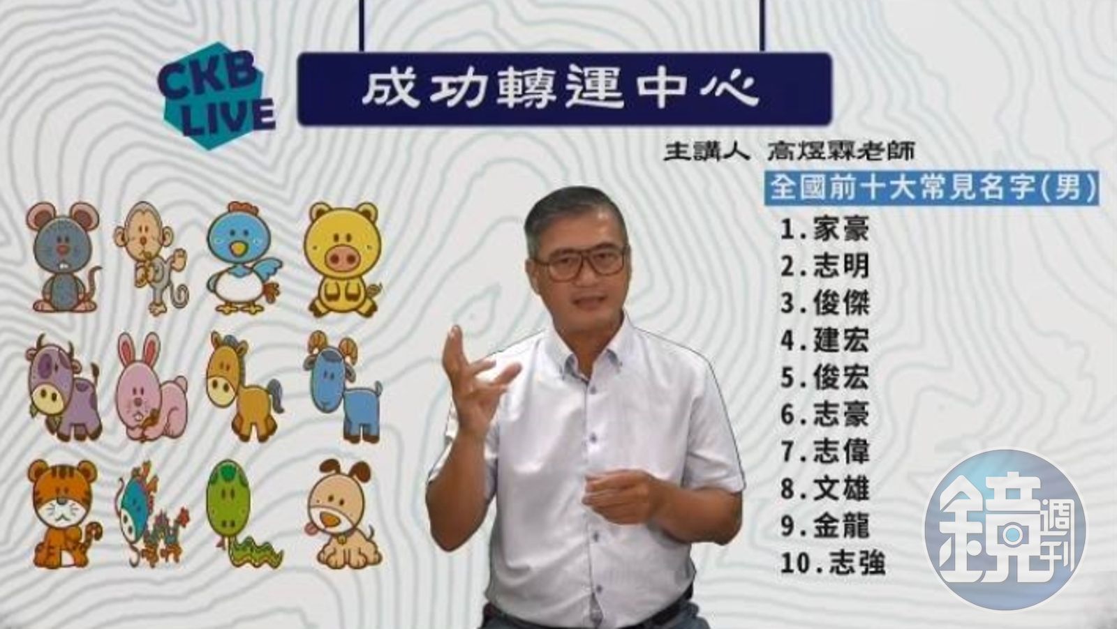 高煜霖說,民進黨高雄市長參選人陳其邁是53年次、甲辰年生、屬龍,今年55歲,以姓名學的角度分析,目前即將走到邁的「田」跟「禸」之間,看起來「土」元素過多,讓事情進行起來並較無亮點,難以鼓動人心。加上「禸」帶有蟲形,是肉的一種,龍吃蟲則較為力不從心。