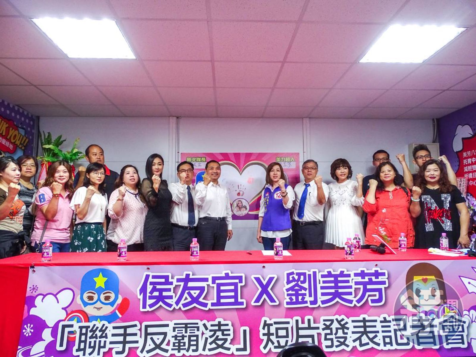 8日下午,新北市長參選人侯友宜、新北市議員劉美芳聯袂召開反霸凌記者會,劉美芳公布一份由兒童福利聯盟所做的《2017社會大眾校園霸凌經驗報告》,當中有7成5成年民眾表示曾接觸過校園霸凌,其中竟有4成1是旁觀者,3成8的人是被霸凌者,換算得知每4人就有3人曾遭霸凌,讓民眾對這份報告感到怵目驚心。