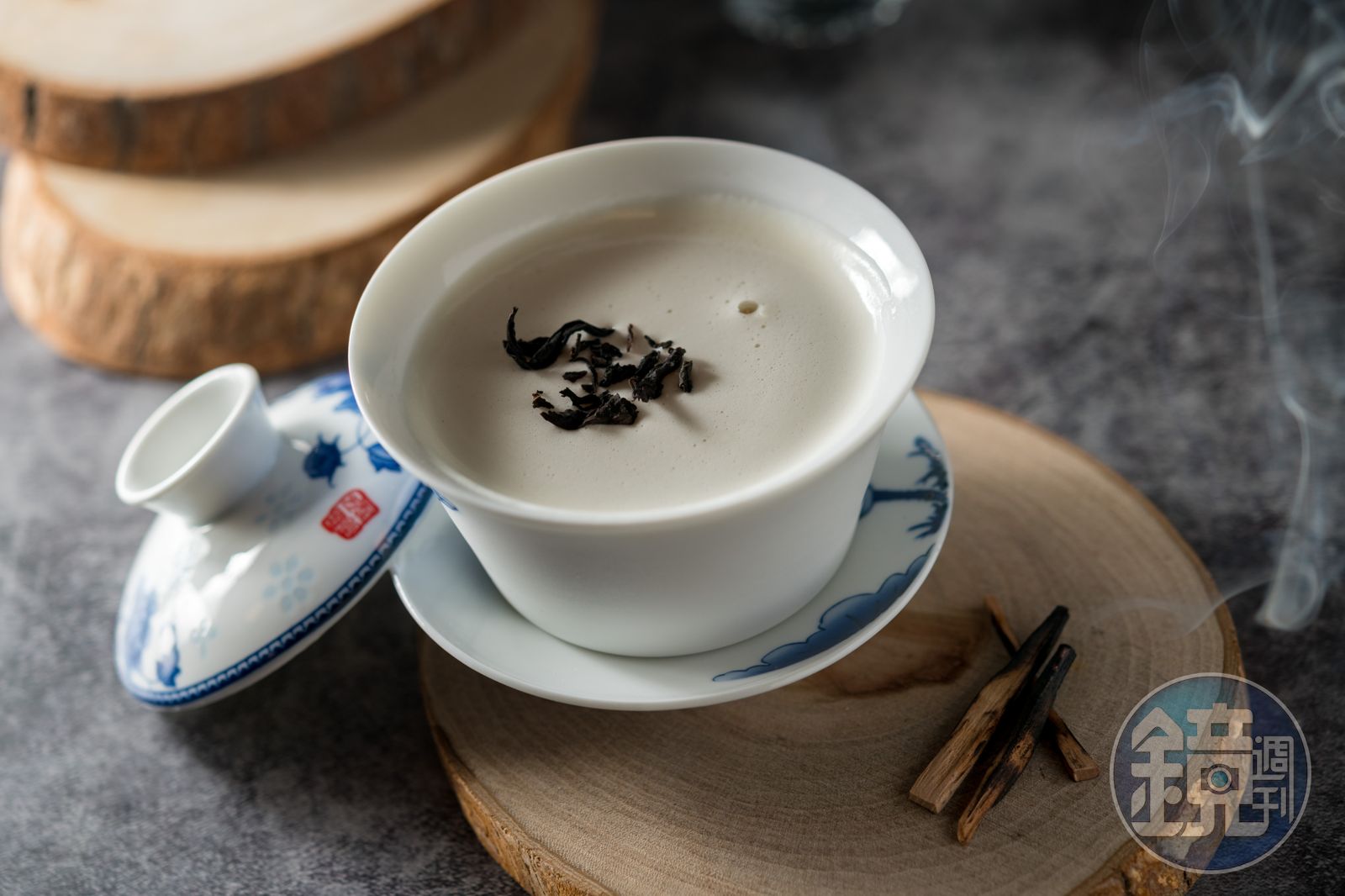 Allen說:「川菜用很多香料,辛香麻辣燙,所以我們也用了很多香氣。」翻開酒單,五款調酒織起的風味圖間,不難發現台灣元素的蹤影,裝在蓋碗裡的「百香烏龍」,用五八度高粱萃取坪林的金萱茶香,再以負壓蒸餾保留豐盈香氣,搭配新鮮百香果,是台灣人熟悉的酸甜搭配,卻因高粱的酒體而得以與川菜平起平坐。