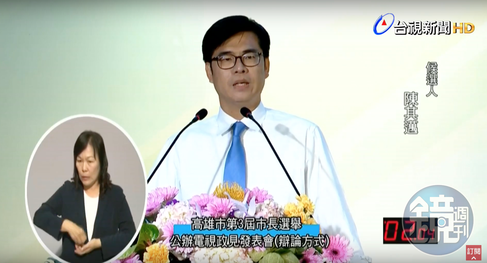 高雄市長選舉政見發表會今天下午登場,這次高雄市長政見發表會雖有讓候選人申論、並接受提問,由於提問部分是由學者發問、候選人依序回答,因此候選人間少了正面對決的機會,明顯少了煙硝味,外界關注陳其邁和國民黨候選人韓國瑜的互動,由於政見發表會沒有候選人交互詰問,2人正面對決得等到19日登場的辯論會。