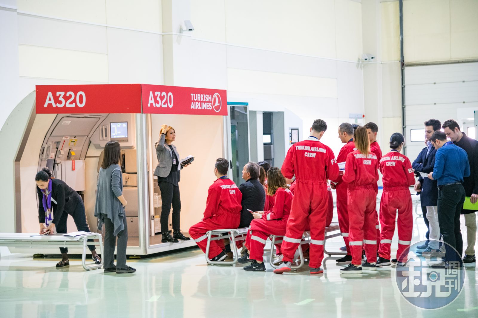 這回,我除了有幸跟著機長一起駕駛B737-800,感受坐在駕駛艙起降的經驗,還巧遇穿著紅包工作服,正在受訓的新進空服員。基本上他們要連續45天完成訓練,才可以合格,中間完全沒有休假,雖然空服員跟機長相比,不用每年都回來考核與檢定,但他們大約每9個月還是要重新回到這個地方,再進行一次模擬訓練。