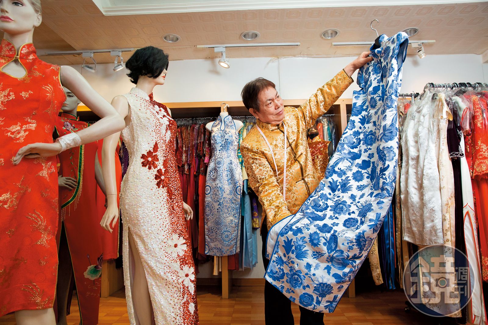 2年前,返家幫忙的陳浩然,引進網路行銷手法,在購物網站下廣告,並透過粉絲頁推銷店裡的旗袍,也在網路社團跟婚紗、外拍攝影師合作,宣傳旗袍之美,效果相當不錯。