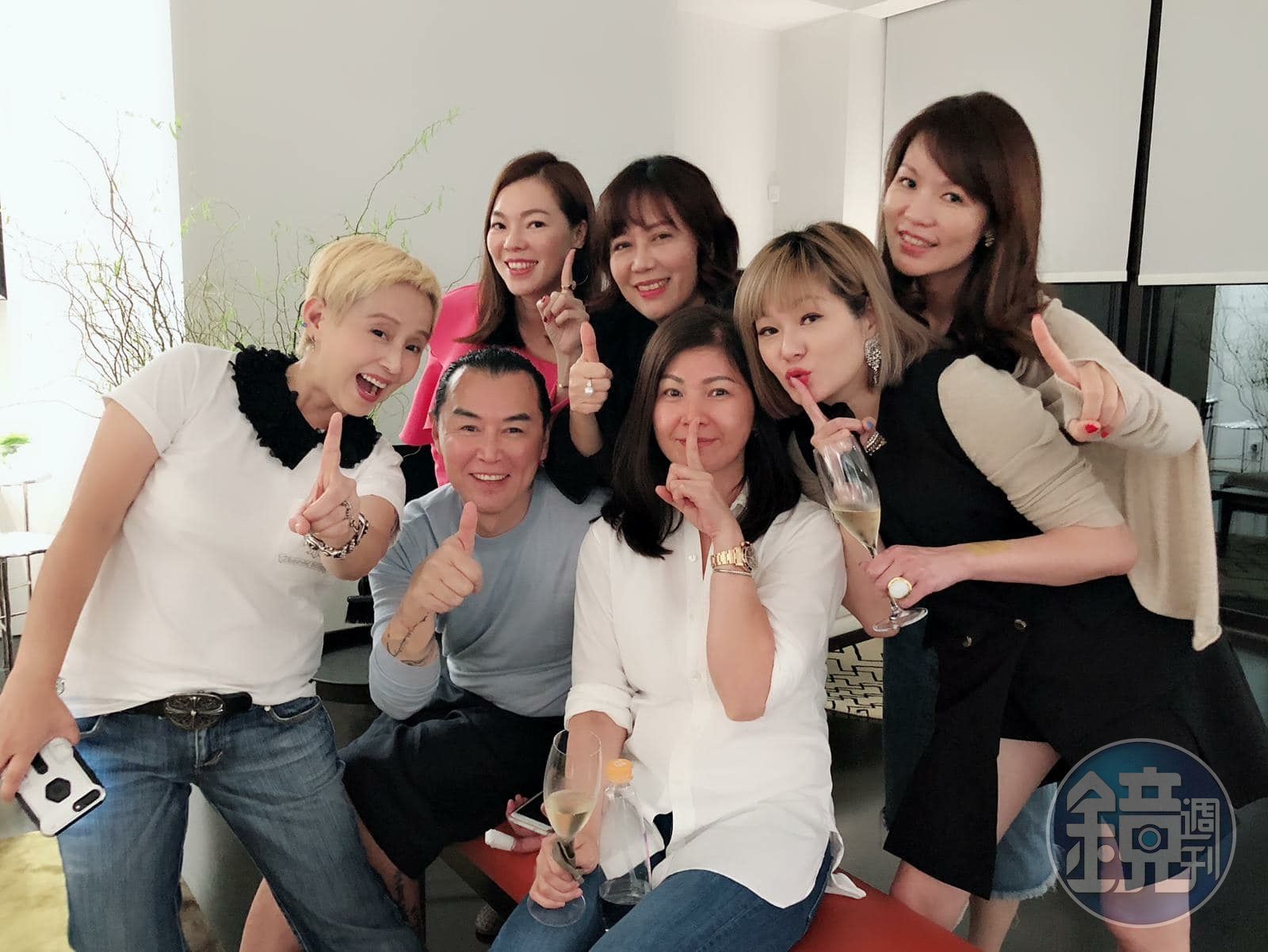 李明依(前排左一)在臉書上分享好友聚會照,並寫下「高雄的朋友,You know」的話,照片中還見到郭台銘的老婆曾馨瑩(後排左一)。(翻攝自李明依臉書)發布時間:2018.11.13 18:09 臺北時間