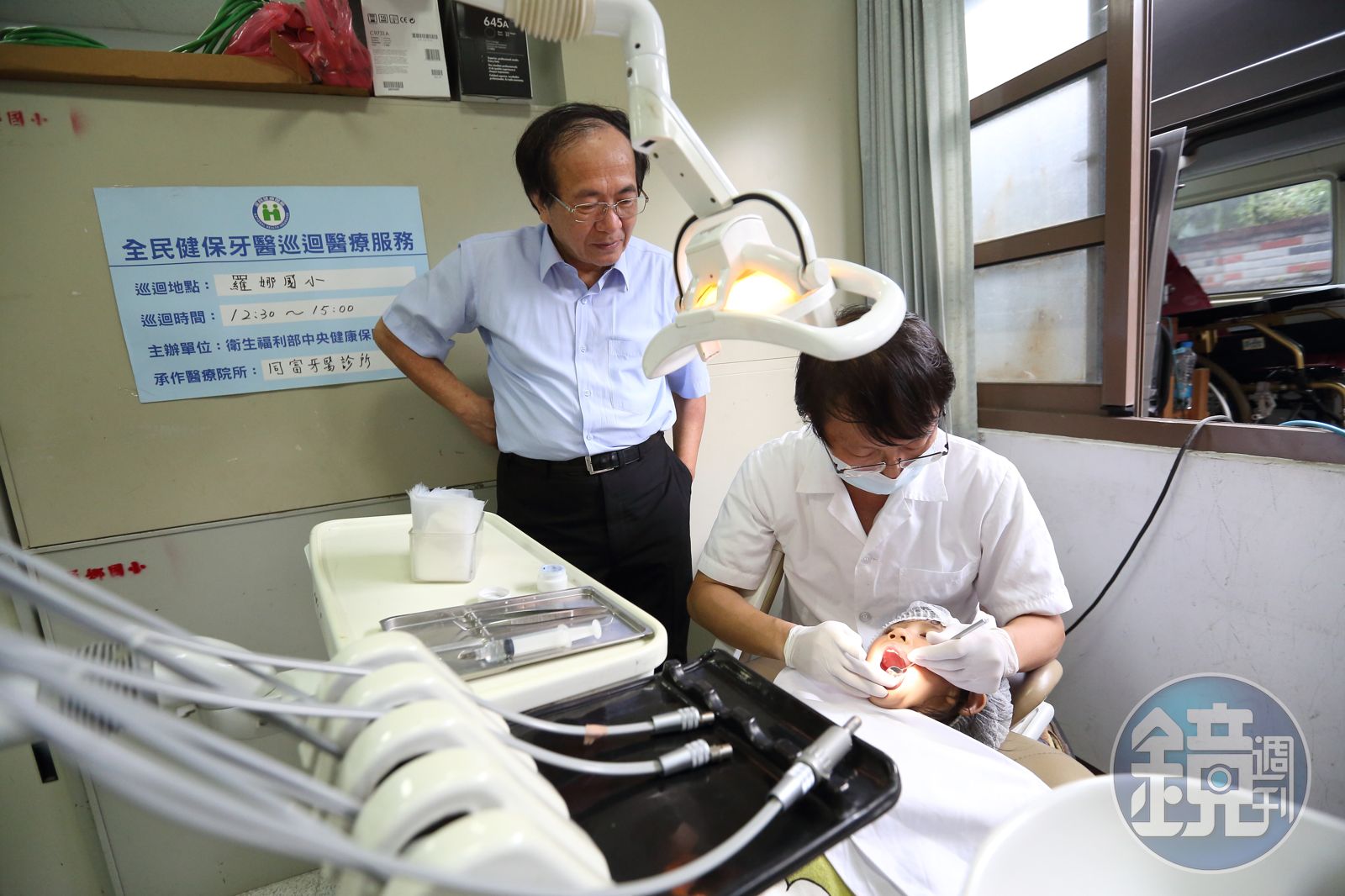 本刊跟著陳義聰走一趟南投信義鄉,王佑崑開著親手改裝的二手巡迴醫療車,輪椅改成診療椅,不鏽鋼桶充當漱口水槽,一箱箱手提式器械塞滿後車廂,每週一到五,他利用午休時間翻山越嶺,前往部落小學替學童義診。孩子們看診前得戴上浴帽,預防頭蝨接觸性傳染;不忍心因家長付不起牙套費而延誤療程,王佑崑乾脆自掏腰包;低年級小孩害怕看牙淚眼汪汪,醫師娘吳瓊芬還準備牙刷、鉛筆等小禮物當獎勵。