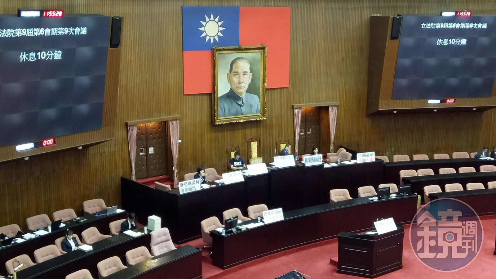 國民黨團書記長曾銘宗帶領下藍委喊「賴院長來報告」「部長下台」等口號,但主席蘇嘉全不理會抗議,照原訂議程繼續開會,林為洲衝向主席台一度攀爬站上主席台,但蘇嘉全直接宣布會議休息,林才從主席台離開,藍委趁機一擁而上,佔領主席台,讓議事癱瘓。