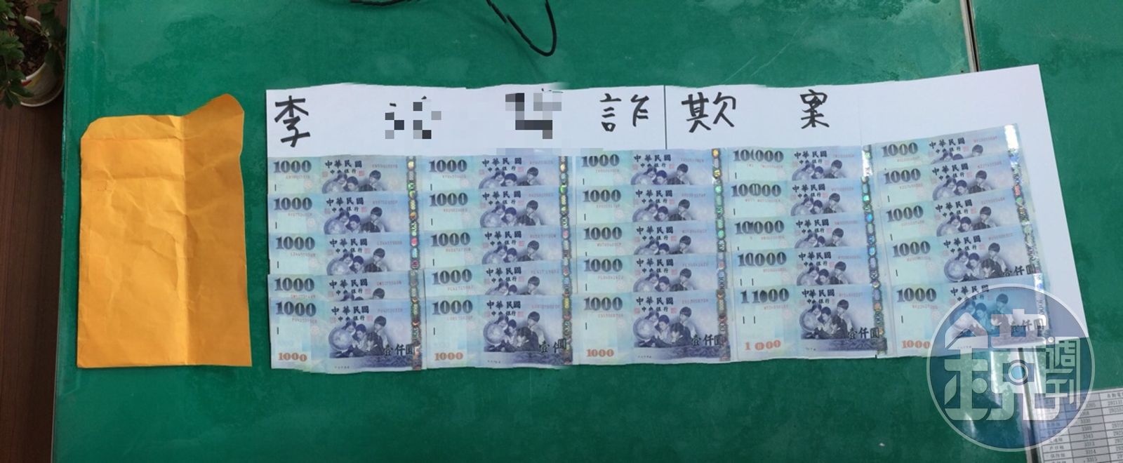 警方在洗錢手身上起出剛從車手那裡取得的25000元。(翻攝畫面)發布時間:2018.11.16 16:01 臺北時間