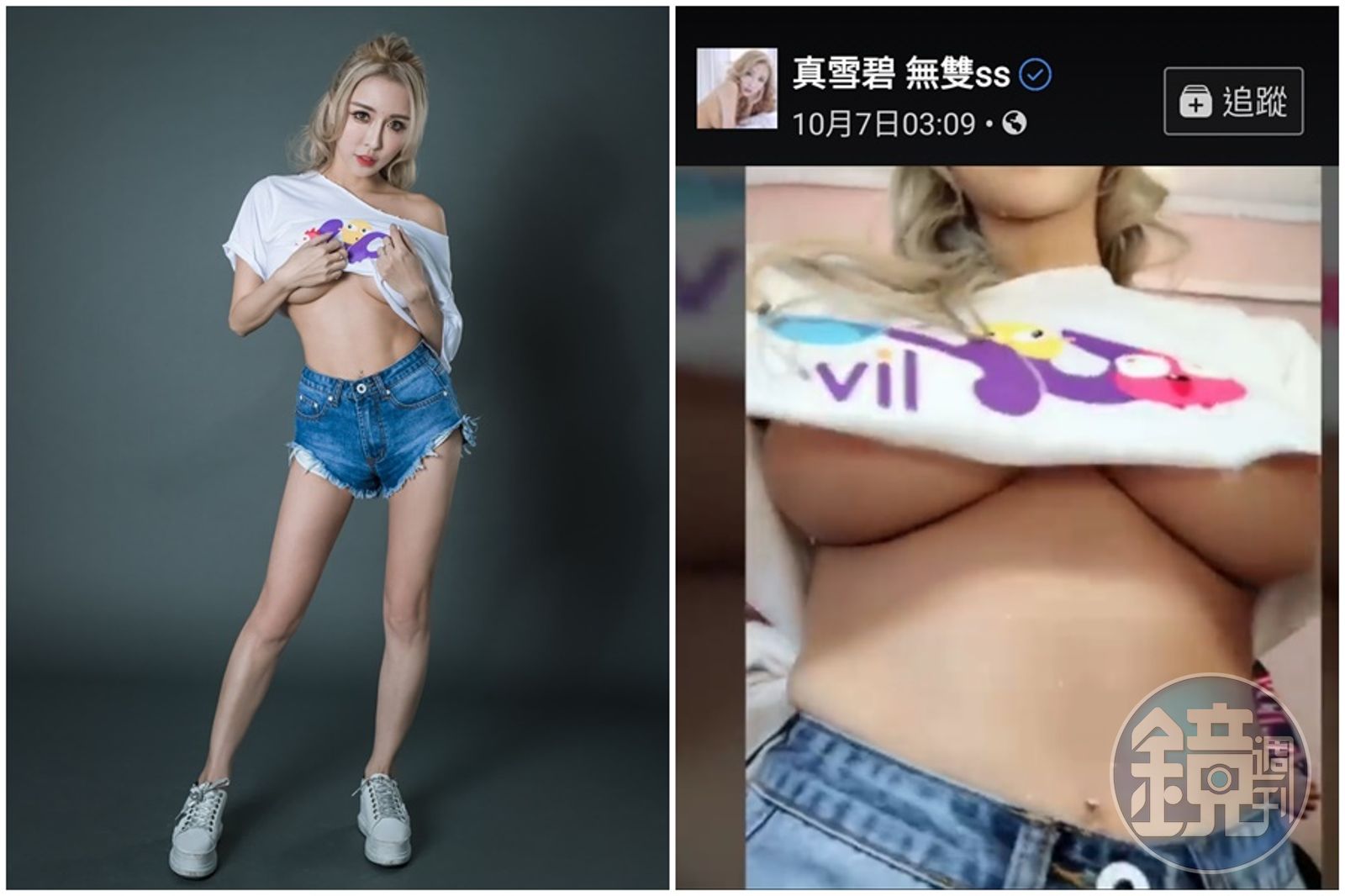 最近雪碧和UP簽約當起直播主,才經營一個多月,收入就有十幾、二十萬,日前她還PO出一段直播影片,短短幾十秒的畫面就二度露出E奶乳暈,激起粉絲一陣驚嚎,紛紛截圖保存。