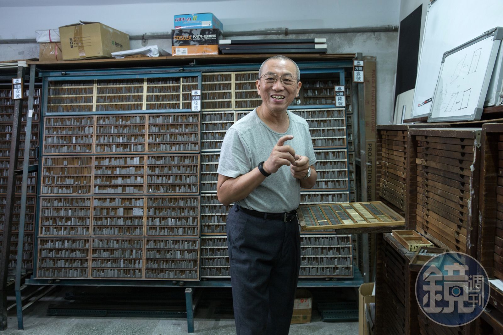 「以前鑄字行是印刷產業裡的惡霸,我們要漲多少錢,下游產業通通都會被影響。」日星鑄字行的張介冠老闆說這句話時,一點也沒有凶惡的神情,淘氣地笑到讓皺紋都聚在一塊。現在活版印刷在台灣幾乎絕跡,鑄字行當然也沒有下游產業了。全台灣只剩下這家鑄字行,他想關門都不行。