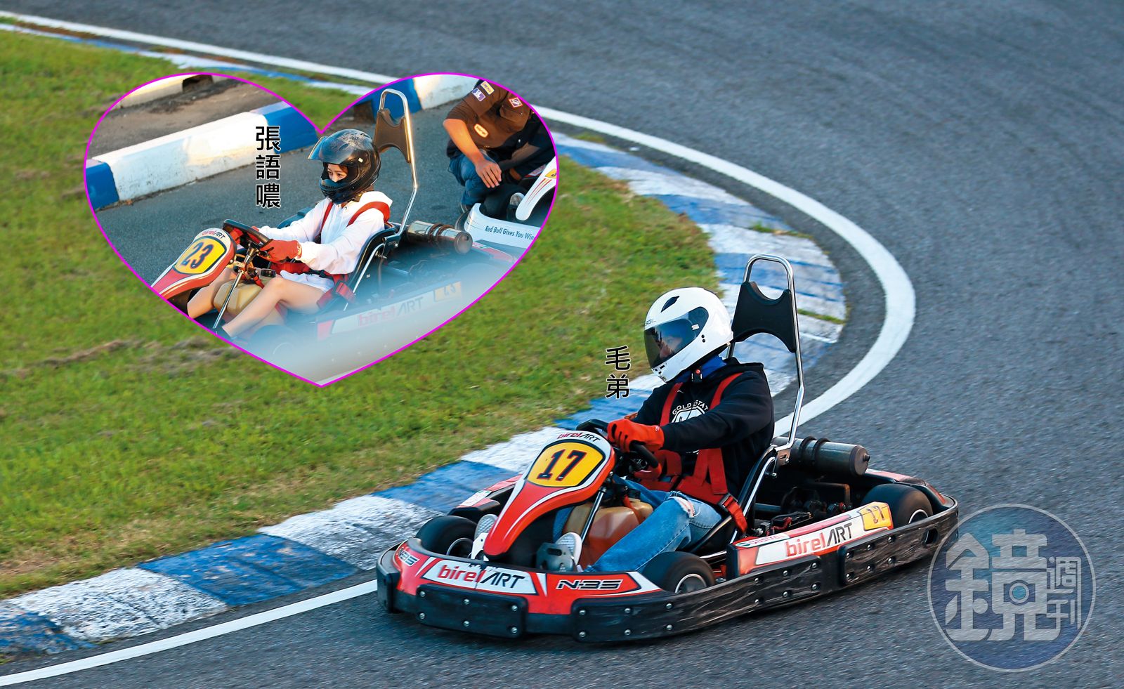 本刊目擊,開著編號17號車的毛弟,在賽道上馳騁,享受速度感,而開著編號23號車的張語噥緊跟在後,雙方的追逐十分熱烈,就在跑完第一圈後,毛弟和張語噥在等待室熱烈交談,但兩人無明顯親密動作,似乎要保護初萌芽的愛苗,不敢太明目張膽。