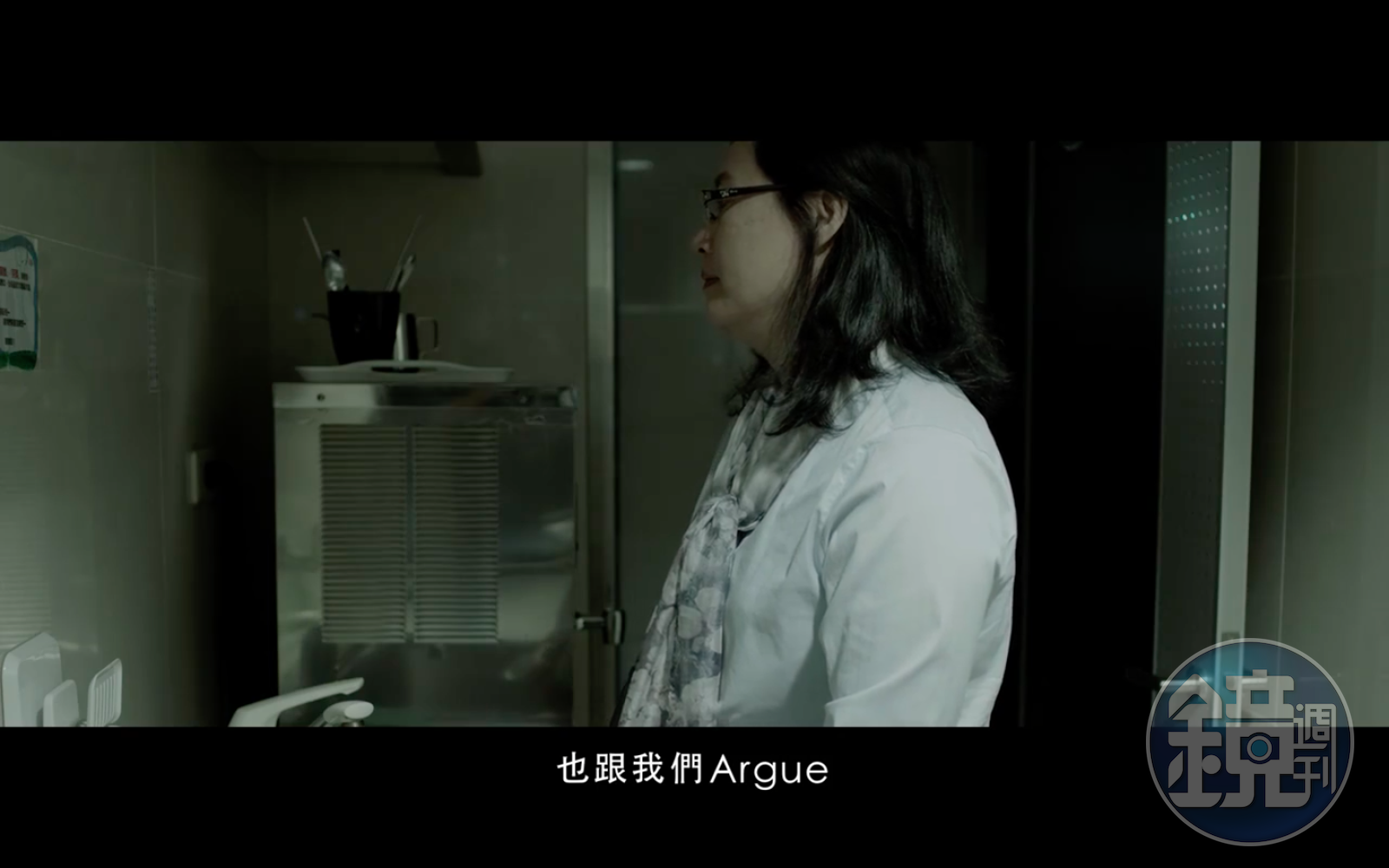 台北市勞動局長賴香伶在柯P最新競選影片低調現身、不現聲。(翻攝自柯文哲臉書影片)至於影片中悄悄現身的賴香伶,一個人默默的在熄燈的茶水間洗著杯子,但未出聲。