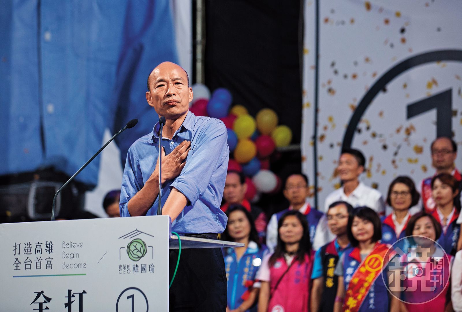 韓國瑜陣營不諱言,早就預料到綠營最後黃金週會全力拚場反擊,但這正符合他們所要營造的氣氛,即「韓國瑜一人救全黨,陳其邁是全黨救一人」。韓陣營操盤人士透露,到最後一週韓還不斷接到要求跨縣市陪同掃街、站台的求援電話,就是希望韓流效應能在五五波的縣市,帶出最後的催票效果。