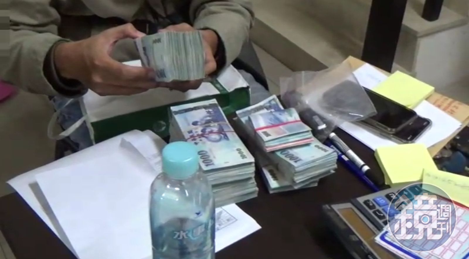 高市警破獲簽賭站,當場查到蘇姓主嫌等12人,起獲621多萬元賭金、點鈔機等物。(警方提供)發布時間:2018.11.21 16:13 臺北時間