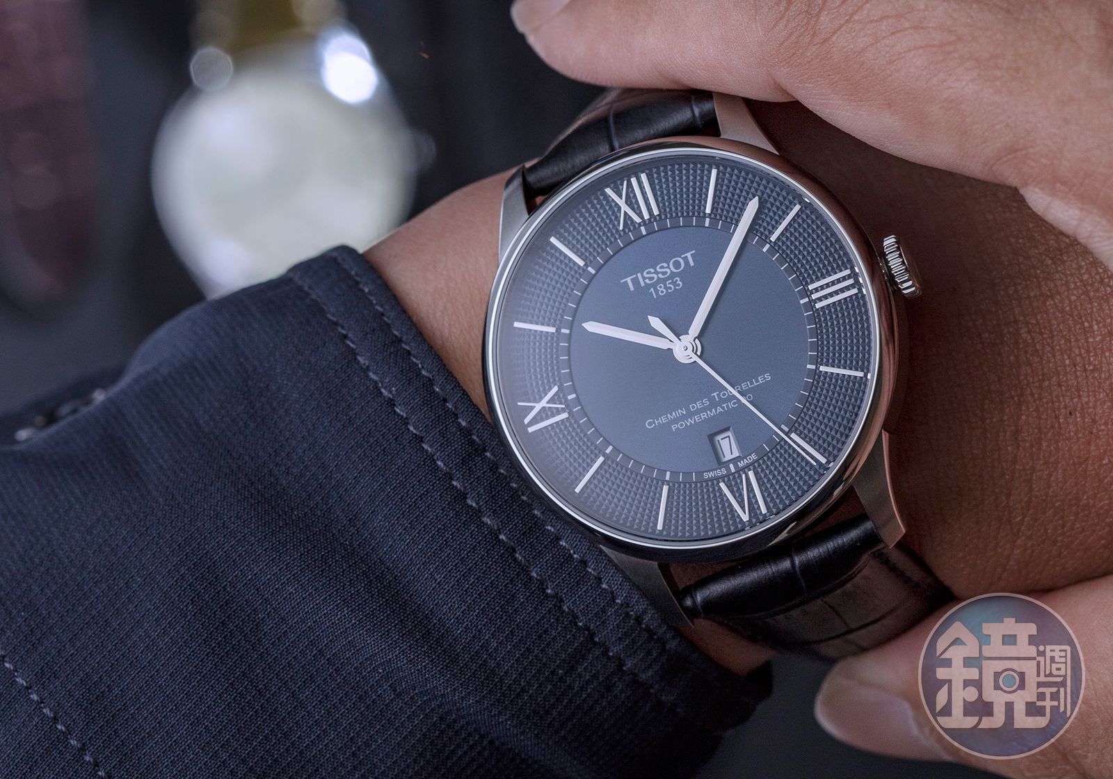要在天梭的產品線找到不同的風格需求是很簡單的事情,如果是正裝錶,首推杜魯爾系列。以品牌誕生地命名的杜魯爾系列一直以來都主打優雅斯文的風格,今年天梭為此系列增添許多不同顏色的版本,除了過去基本款的黑、白面之外,增加近年來最夯的藍色面盤,另外還有鏈帶與金色PVD錶殼等不同選擇。