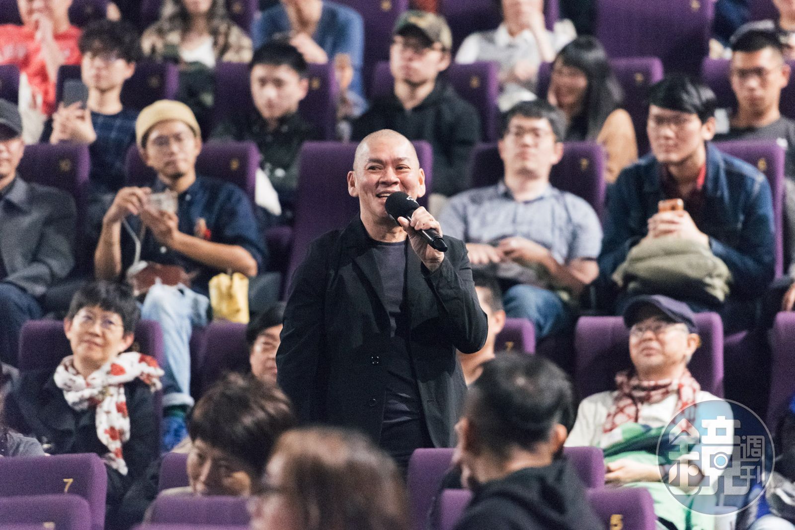 當晚帶著媽媽出席的李康生,幽默自嘲媽媽在銀幕上示範讓口齒清晰的「舌頭運動」,小時候都沒學到,才會講話這麼慢;而李康生這幾年因健康因素,只能跟著蔡明亮拍戲,蔡明亮這晚也欣慰地告訴觀眾「小康終於開始工作了!」他透露李康生前晚友情跨刀為一位新人拍MV,「我覺得很好,所以要他去。」接下來李康生還會拍一部大陸電影,可以說已全面復工。而李媽媽面對滿場觀眾絲毫不怯場,非常活潑,她每天都會去公園做運動,要粉絲也多出來走走,不要只會吃飯看電視,才不會得老年痴呆症。