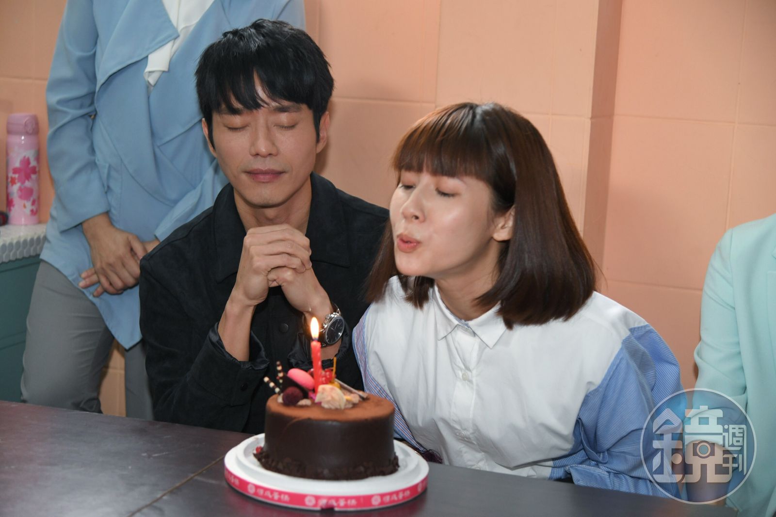 《一千個晚安》23日特地帶媒體到宜蘭廠景探班,恰好張棟樑、連俞涵都是下週生日,特地提前慶生, 張棟樑對連俞涵笑說:「我們倆的生日都要在拍戲中度過了。」 連俞涵卻表示其實不大愛過生日,特別是朋友要起鬨唱生日歌的時候會覺得很尷尬,所以一到生日她都會做落跑壽星,找朋友躲到山上或海邊「避壽」。 這次拍戲跑遍全國,張棟樑透露,最辛苦的就是要早起,6個月的拍攝期爬山涉水,只差沒跳海,連俞涵透露,最難忘在阿里山看日出,半夜2點多就要起床,雖然辛苦看到美景還是很感動。