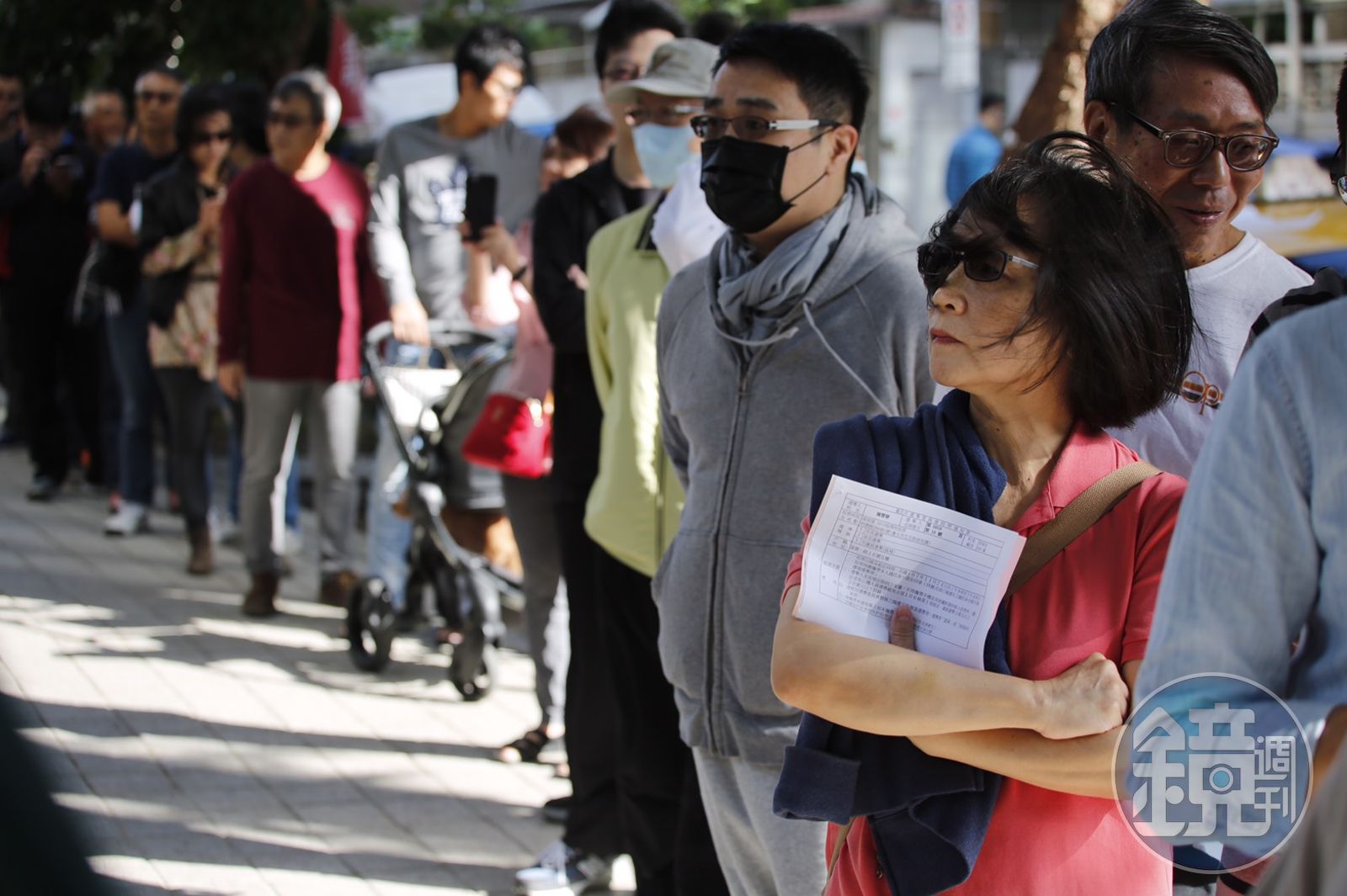 投票進入最後倒數階段,部分地區投票所還是排了許多民眾等待投票。(林俊耀攝影)
