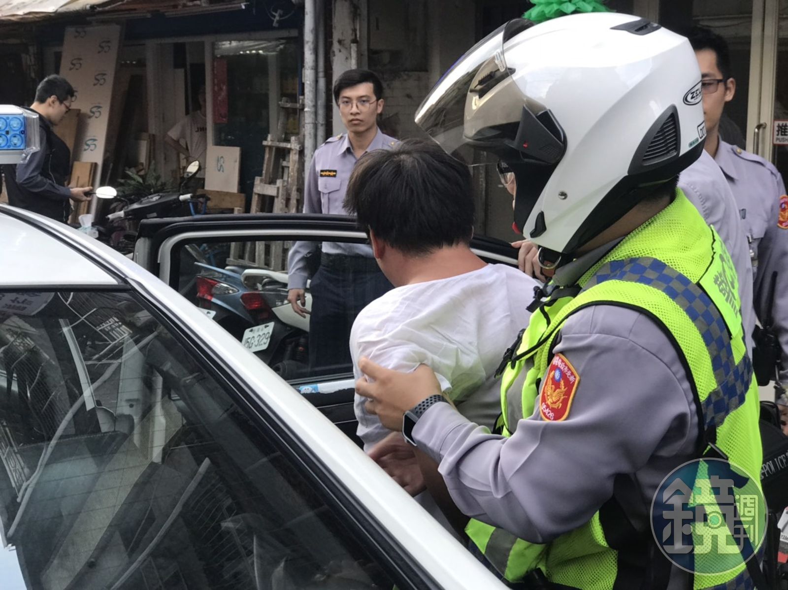 警方趕赴現場後鳴槍示警,逮捕行凶的廖男。(警方提供)發布時間:2018.11.24 18:34 臺北時間