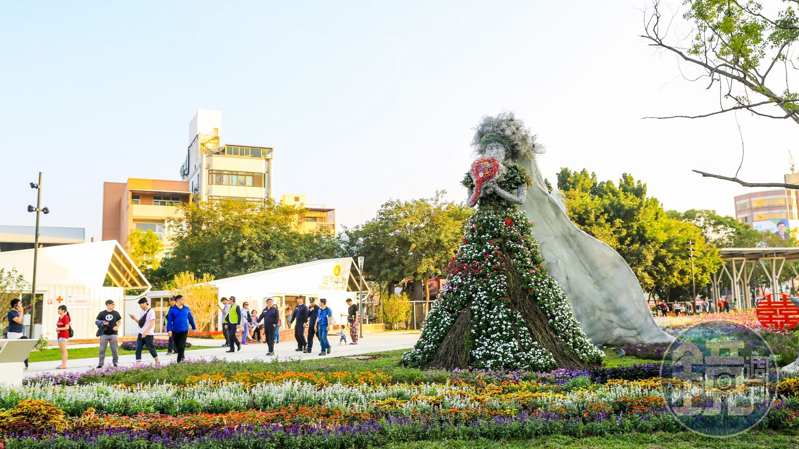 利用琉璃藝術打造的迎賓捧花,位於園區入口處,繁盛的花蕊映襯著艷紅花朵,象徵著幸福到來的喜悅。